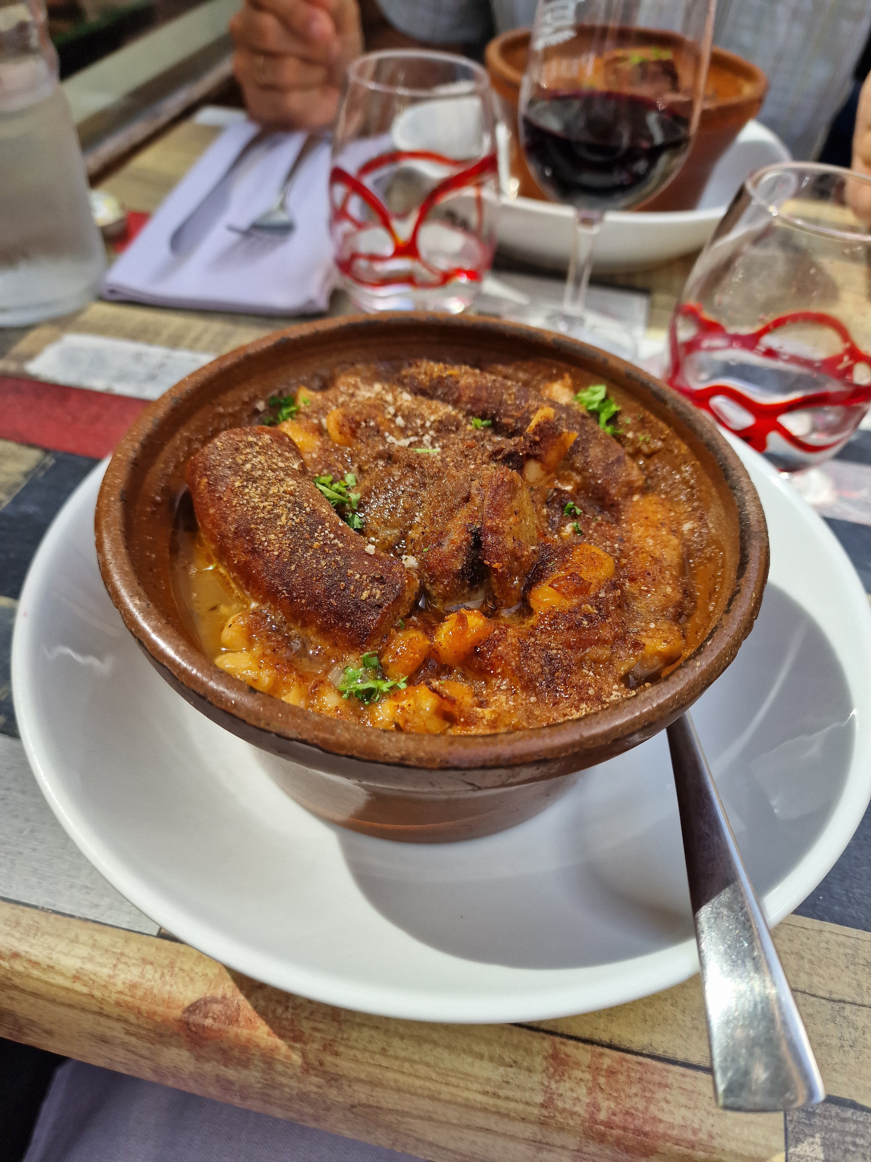Désolé mais le cassoulet que nous avons mangé ne fait pas honneur au cassoulet du sud-ouest ! Nous sommes tarbais mais les haricots ne l'étaient pas. Il s'agissait d'une soupe à la saucisse avec un petit bout de confit...