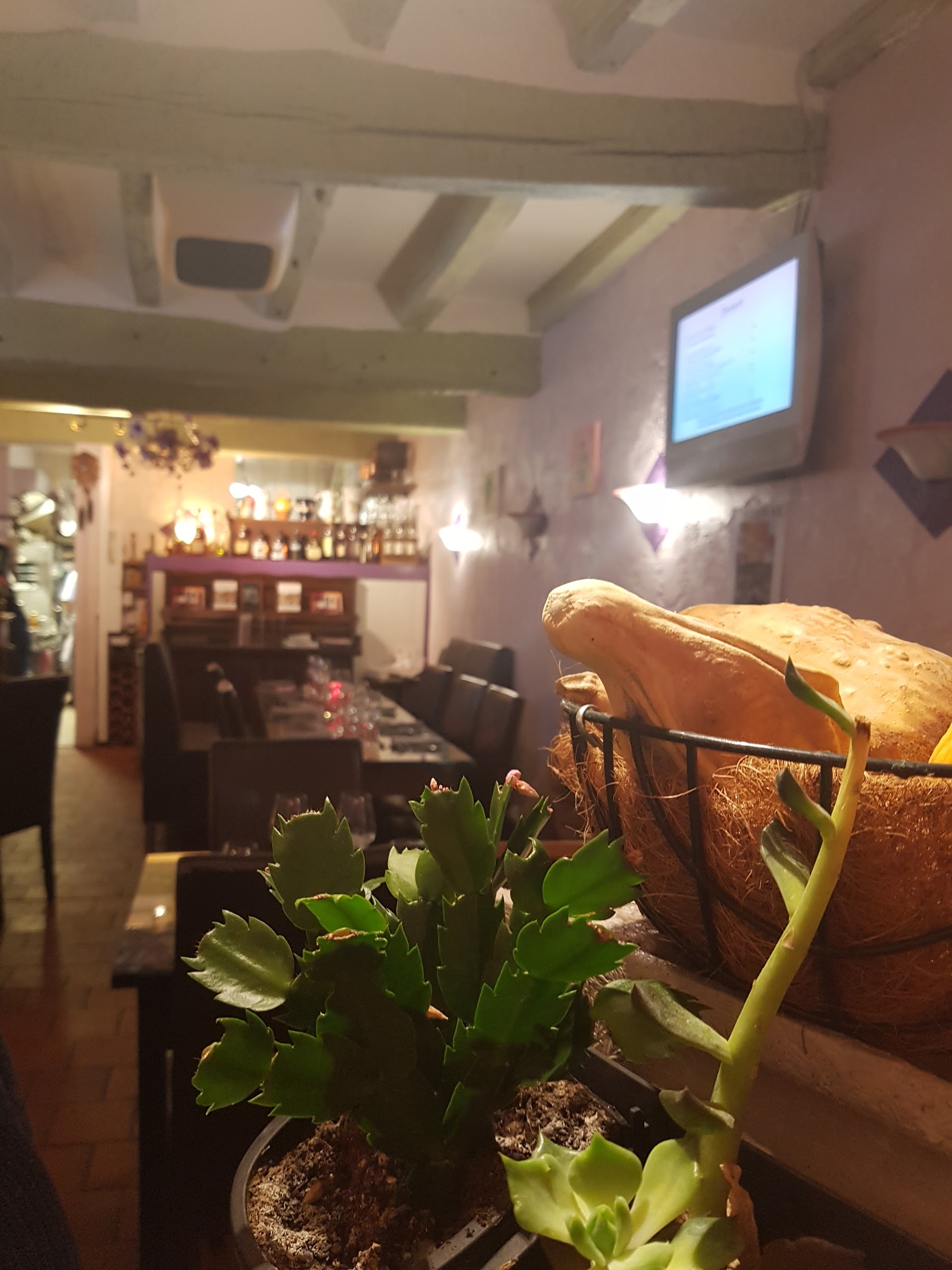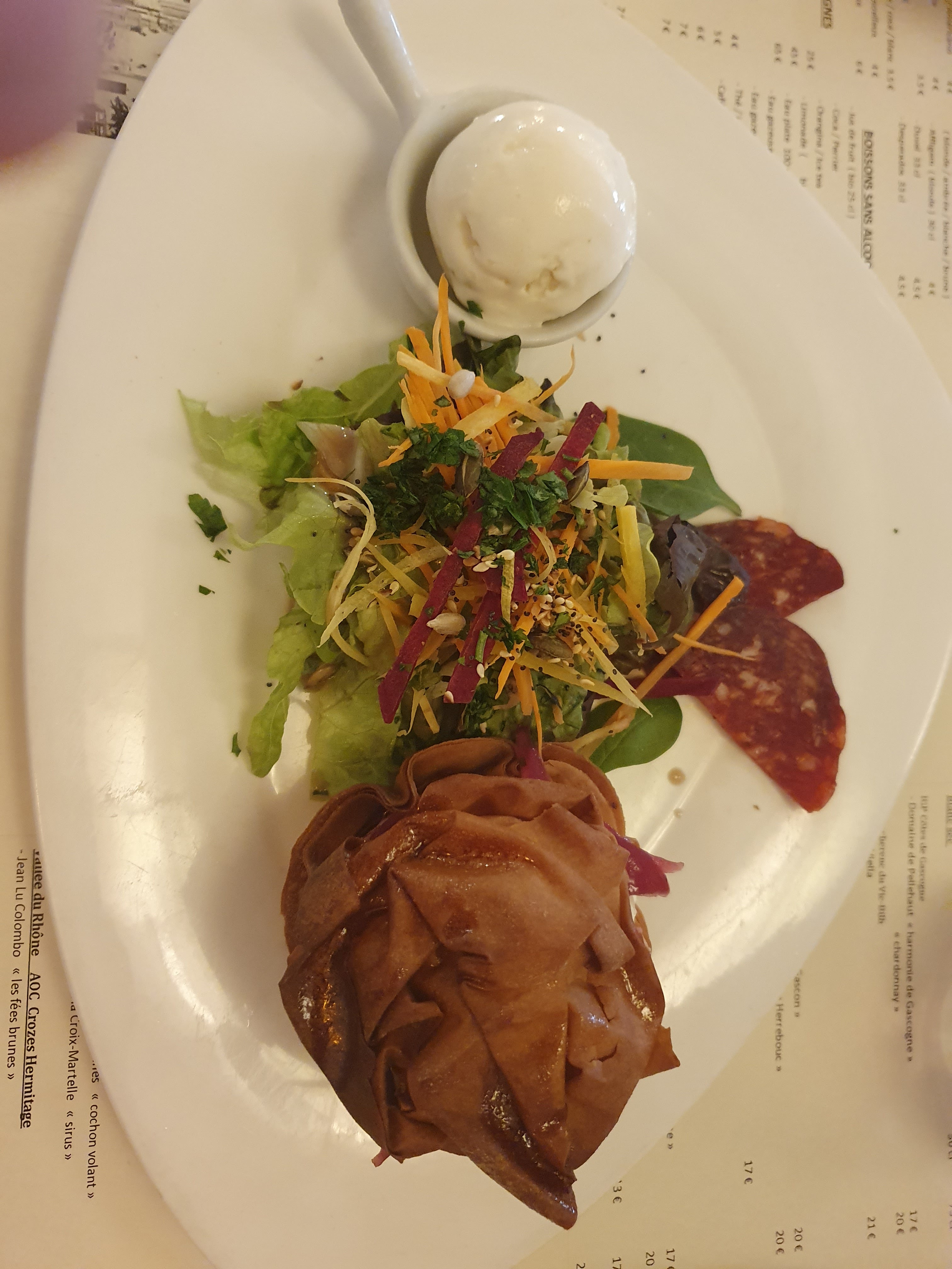 Restaurant chaleureux. Nous avons bien mangé. Le vin blanc aurait mérité un seau avec de la glace pour rester frais. Mention spéciale pour la croustade excellente !!!!