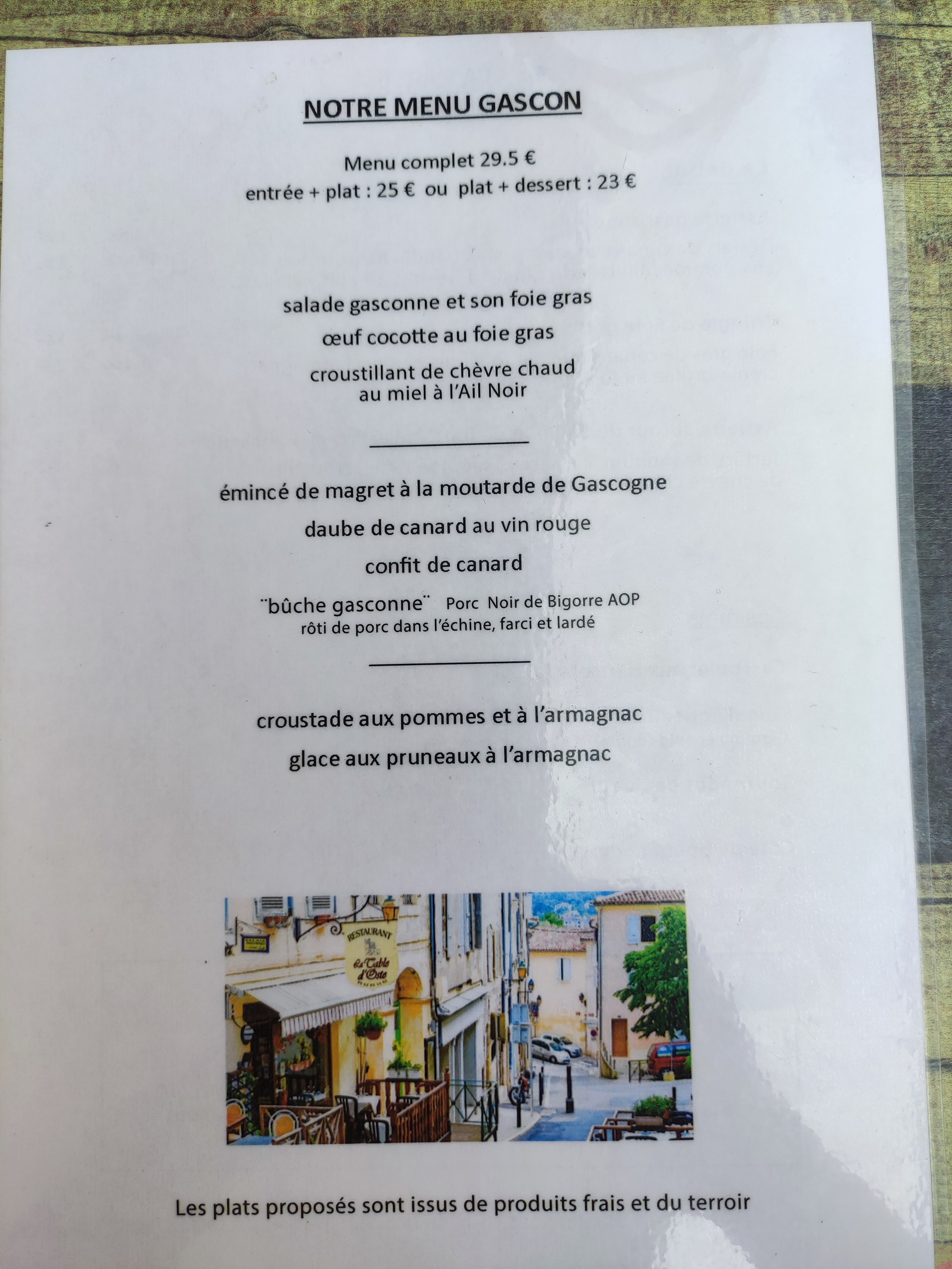 Une table incontournable de la gastronomie gasconne. Tout est bon : la planche tout canard, le fameux Hambur Gers Gascon, le cassoulet, sans oublier le pastis gascon tiède et sa boule glace aux pruneaux et