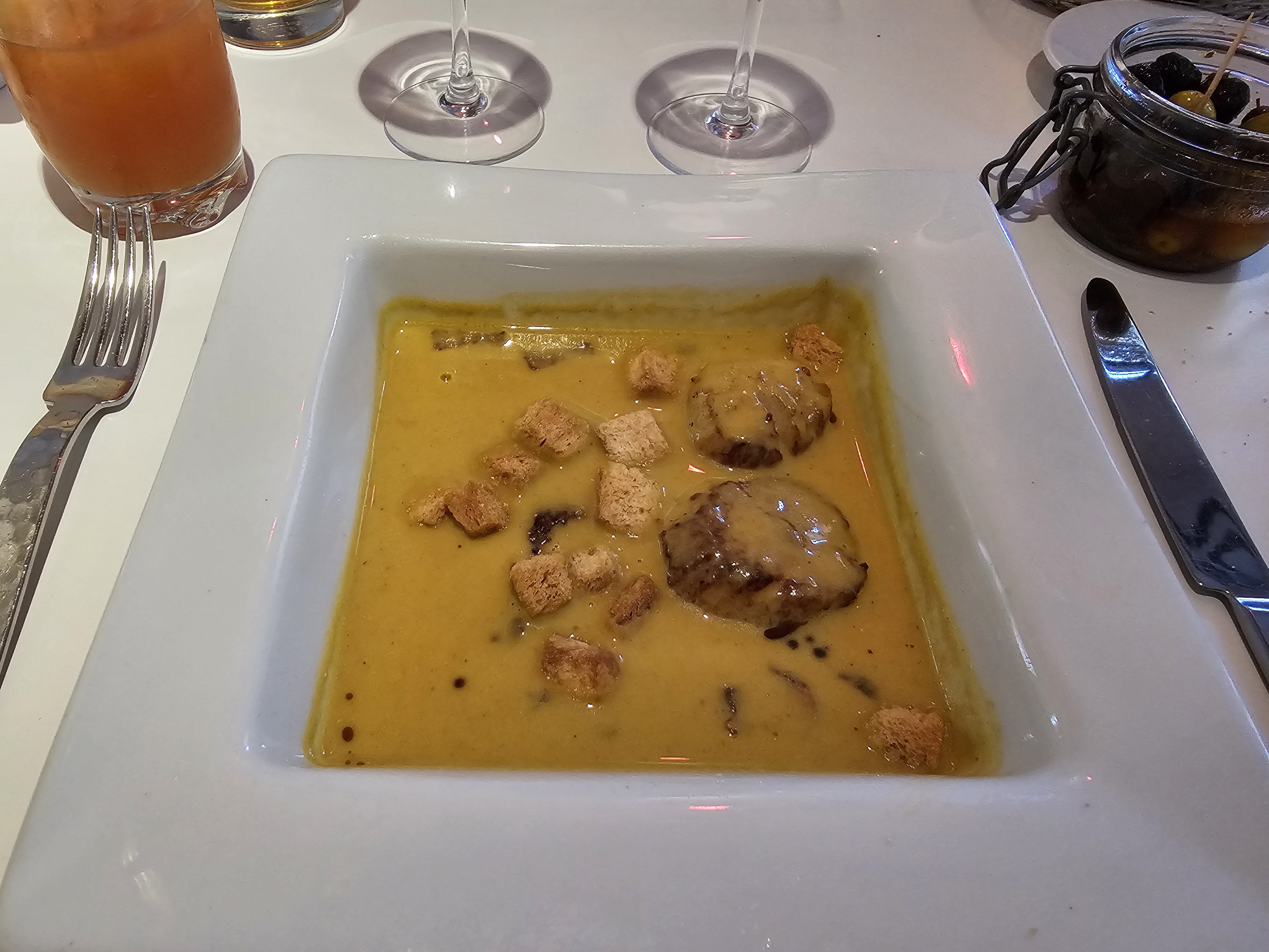Pour le repas, le rapport qualité prix n'y était pas. Une box de 150€ pour 2 sans boissons comprises. Les queux de lotte c'étaient une bouchée de lotte. La salle manquait de luminosité et un des serveurs pas agréable. Nous avons eu 2 fois un geste de desinvolture lorsque nous lui avons fait savoir qu'il s'était trompé sur la commande. C'était une expérience négative pour nous malheureusement