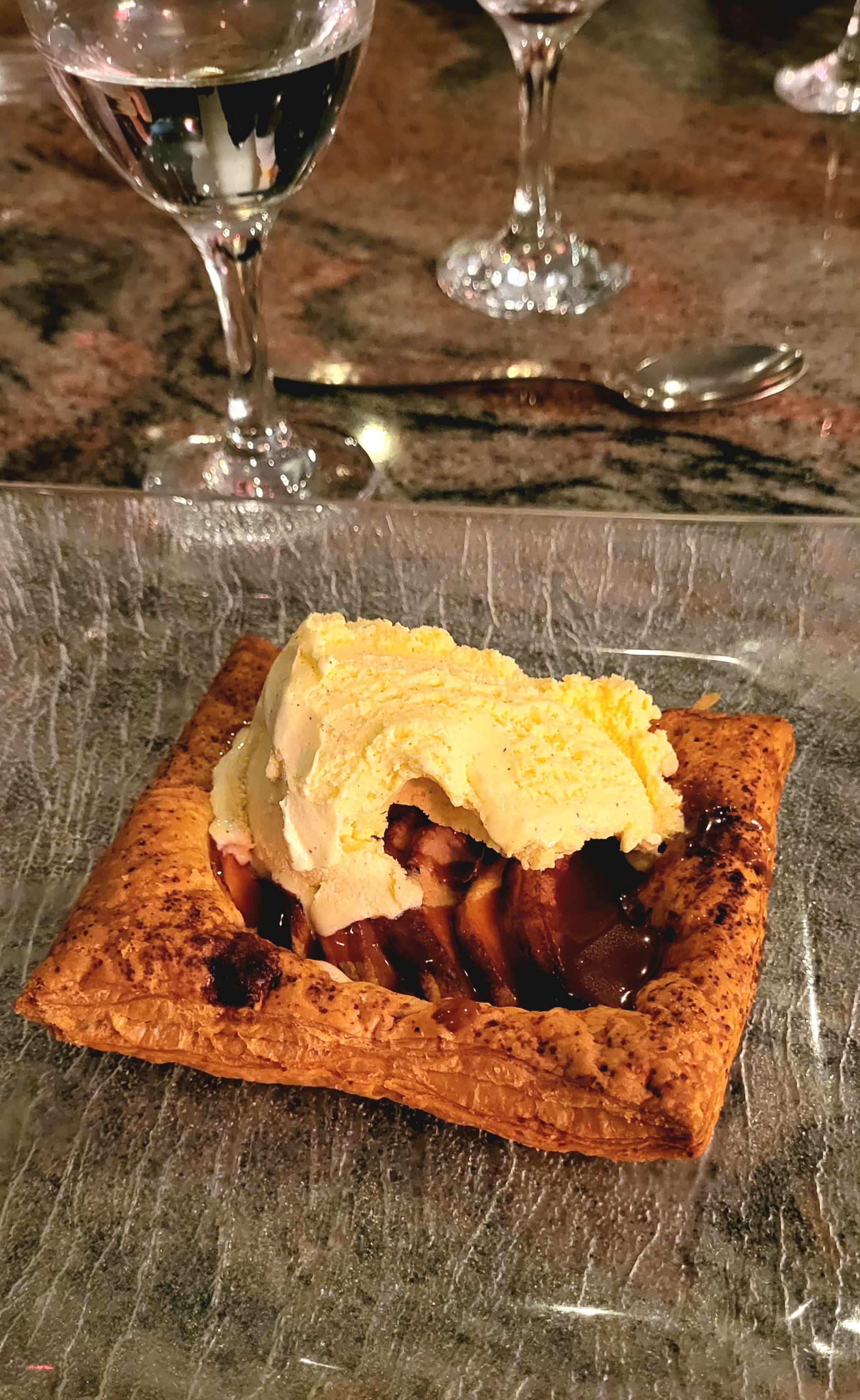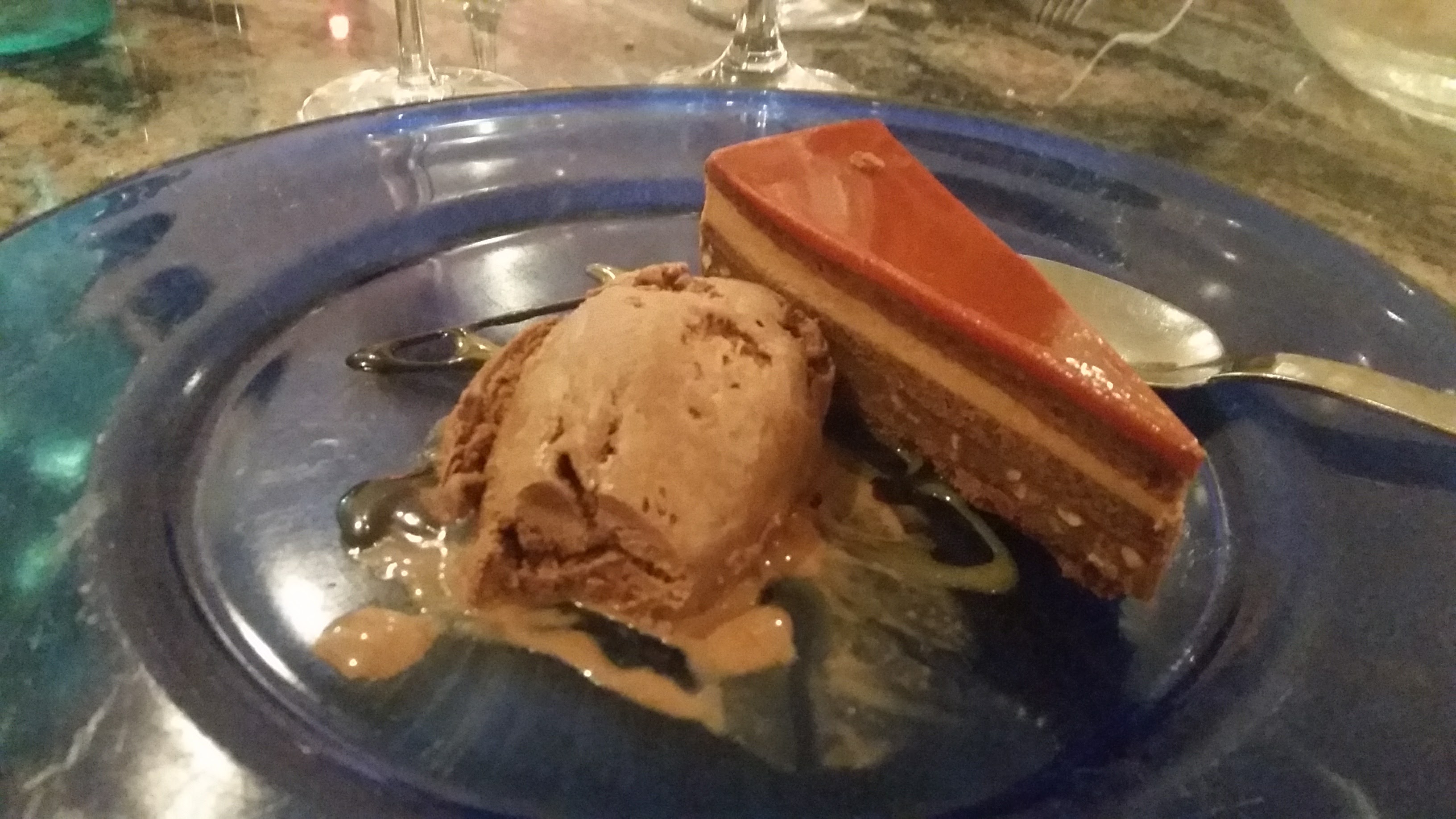 Bonjour, nous c était des plats à emporter, pâtes aux truffes et dessert sorbet orange. Tout était parfait et un petit plus pour le sorbet à l orange. Bref, on tentera covid terminé le restau en terrasse.