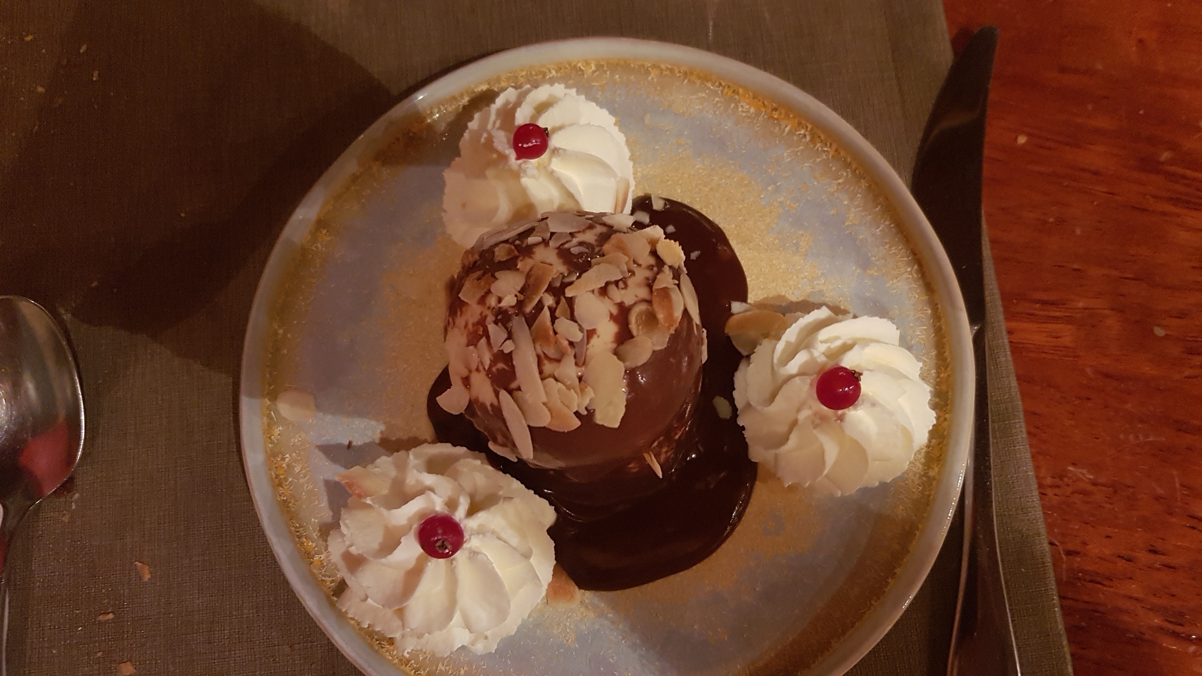 Pas mal. Découverte de ce restaurant pour le réveillon. Prix abordable d'autant que soirée musicale. Menu trop copieux, bon dans l'ensemble. Dessert original mais la moitié d'une part aurait amplement suffi. Dommage pour le gaspillage. Bons vins. Les serveurs sont gentils mais parfois un brin mal organisés. Équipe pressée de ranger alors qu'il restait des clients. Accueil cordial, non chaleureux. En revanche, orchestre très sympa, excellente animation : merci Meyer !!