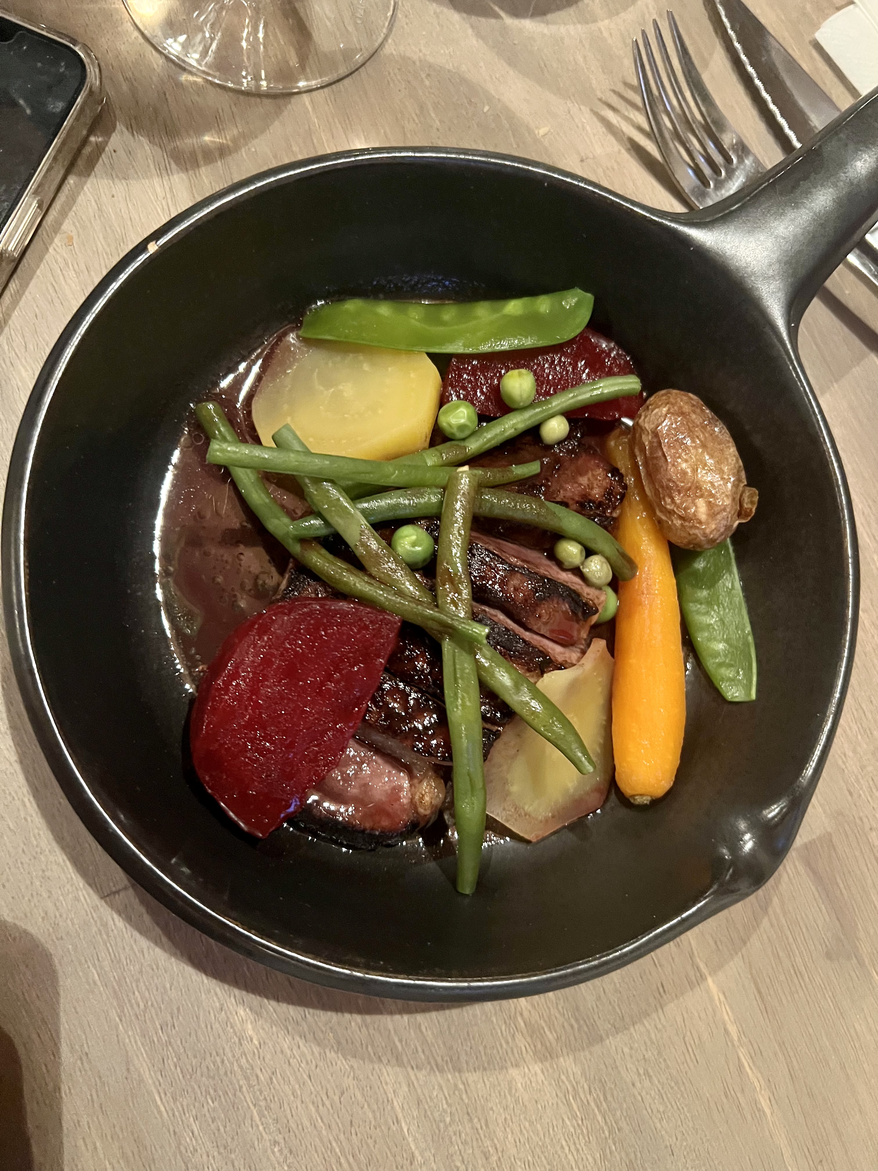 Nous avions réservé pour 5. Et nous avons tous excellemment bien mangé. Un + pour l'originalité sur le plat filet mignon et ce mélange sucré salé avec les petits pois / fraise. Cadre chaleureux industriel avec présentation des assiettes d'un gastronomique. Étant normand, nous regrettons de ne pas pouvoir y retourner de si tôt.