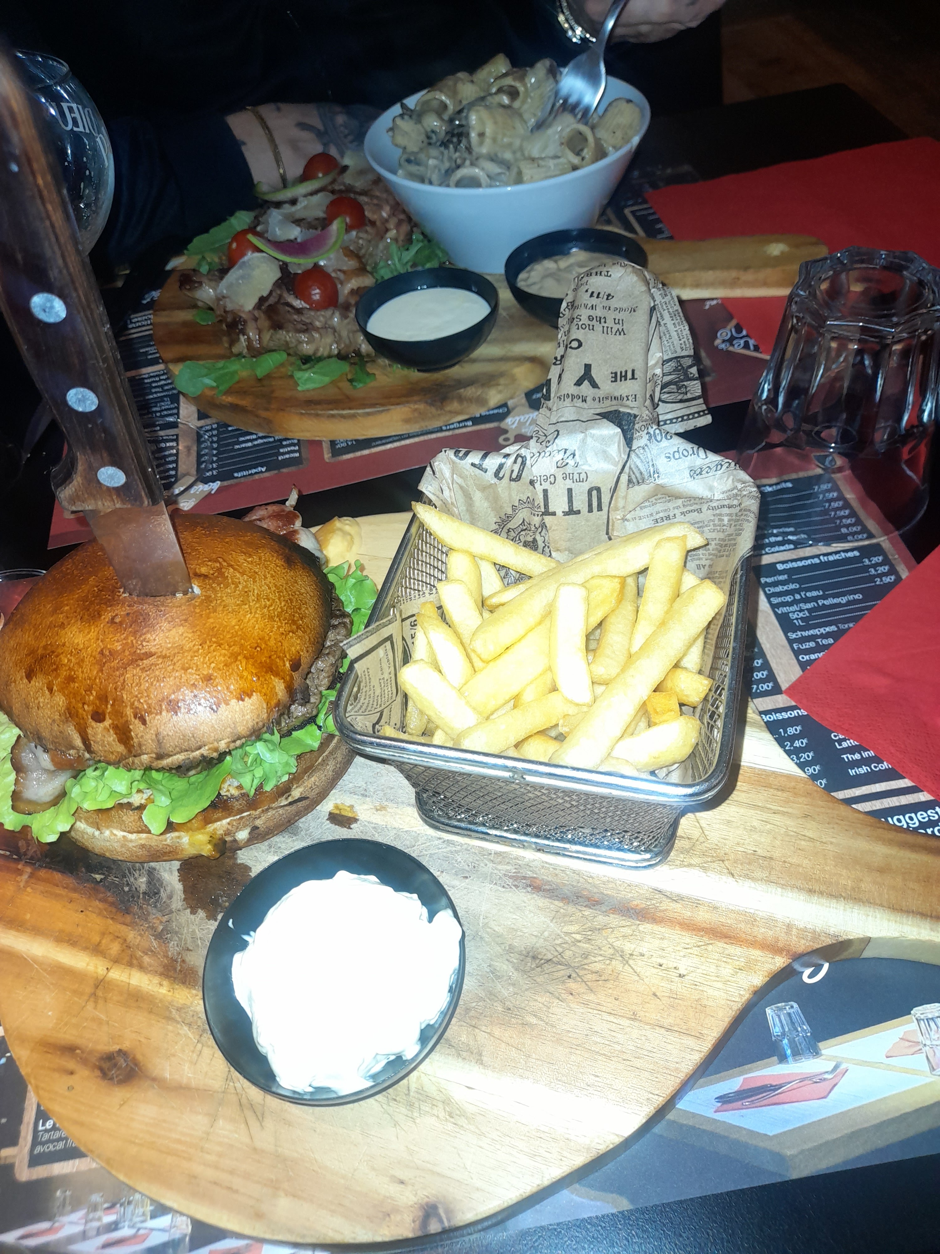 Bon accueil, personnel agréable petit bémol lss frites trop cuites et sec Pour une première dans se resto super decut