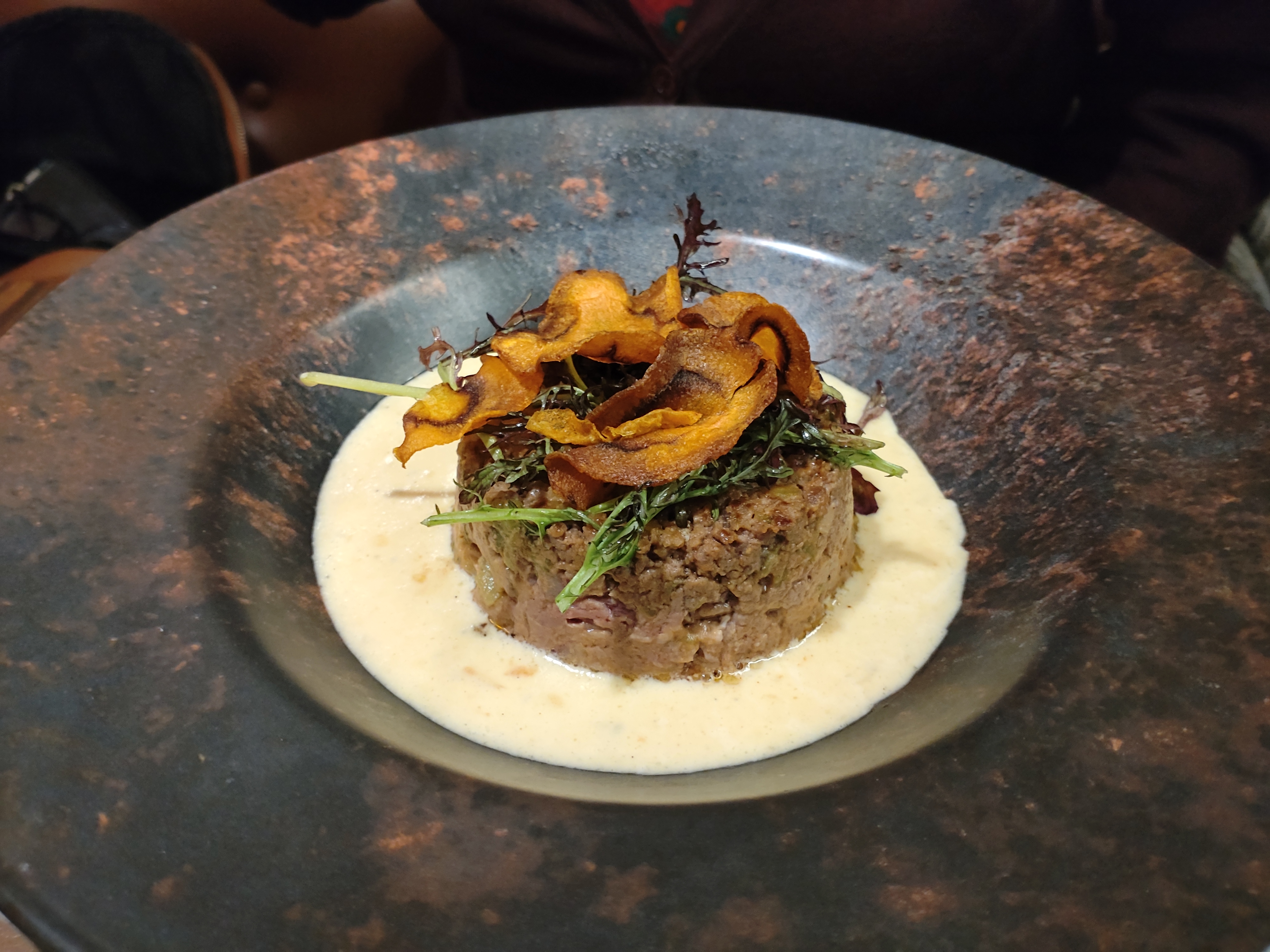 Je n'ai pas aimé. L'oeuf meurette pas bon, sauce très épaisse, œuf presque dur et froid à l'intérieur, lard très gras et très dur. Steak tartare correct., pomme de terre pas cuite et farineuse. Le fondant au chocolat quelconque. Le tout arrosé d'un saint Estephe sans saveur. Bref plus jamais