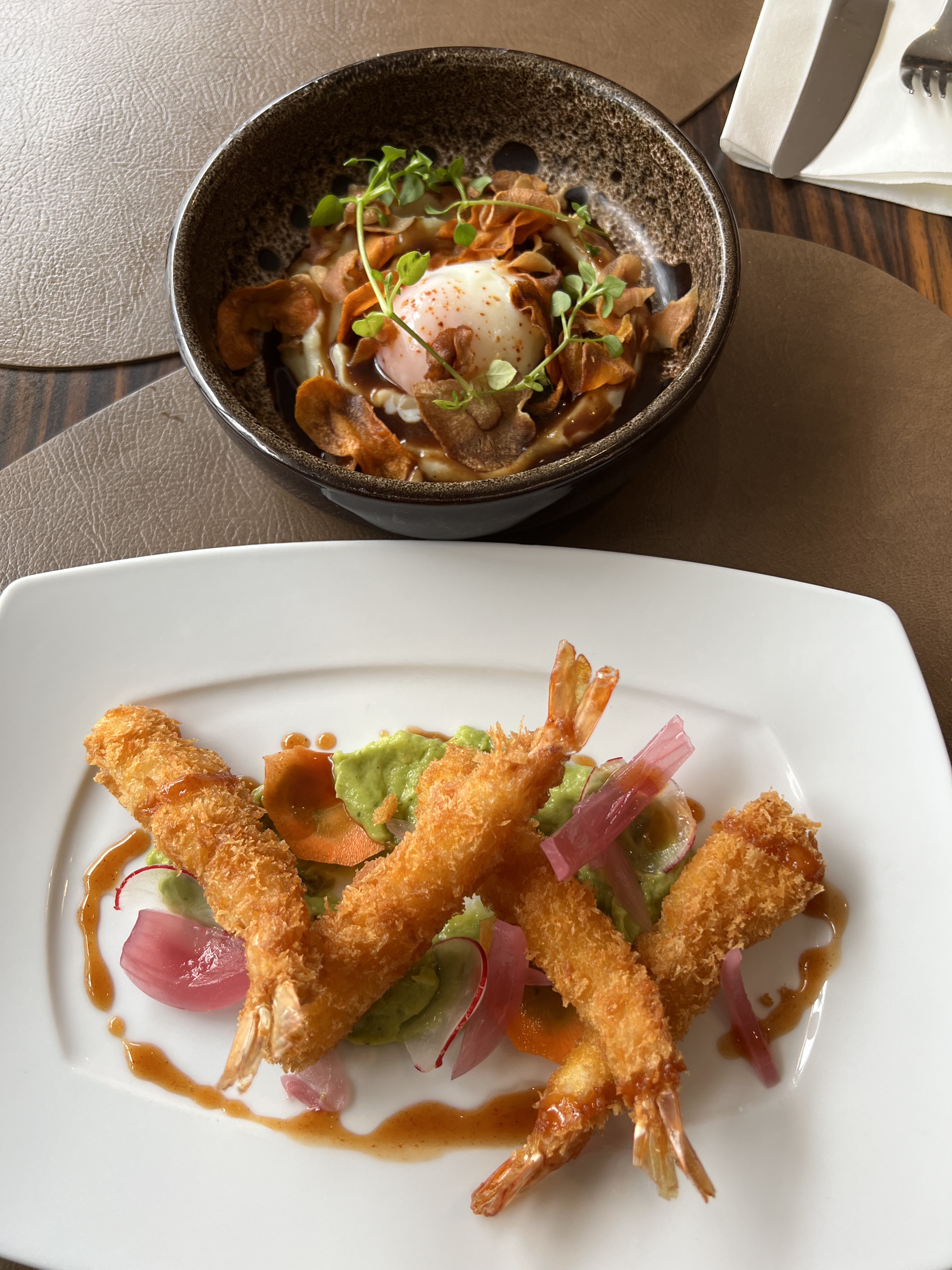 La cuisine mérite le déplacement. Originale, bien exécutée, cuissons maîtrisées, le frit est bien réalisé, dressage esthétique... Bravo ! Mais... Car il y a un mais, vu la note 😁 Le service confié à une stagiaire, j'avais déjà vu. Mais encadré. Là, rien. Toutes les erreurs possibles ont été commises, avec des plats servis sans couverts, et même une assiette enlevée sans que le second convive n'ait fini la sienne. Même les restos routiers ne font plus cette erreur 😏 Un vieux bonhomme dans un coin à l'entrée qui bougonne pendant tout le repas, le nez plongé dans son smartphone (respect pour l'adoption technologique des seniors 👏), une hôte qui a un avis sur tout, mais surtout un avis, qui demande si tout se passe bien sans attendre la réponse, et qui ne vérifie pas vraiment ce qui se passe. Alors que nous n'étions que 6 clients dans tout l'établissement. Décor moderne et propre (pour les années 70), avec des toiles d'araignées aux lustres (un reliquat d'halloween ?), des cocktails/mocktails originaux et plutôt bons (à des prix de Paris 8ème), je n'y reviendrai pas. Et vous déconseille d'y aller. Je vois déjà la réponse du restaurateur : Oui, condescendance, bla, bla, il fallait aller ailleurs, bla, bla, content de ne plus vous voir, bla, bla... Typique de ces restaurateurs qui ne se remettent pas en question, de ces petits patrons despotiques et obsolètes, qui jettent l'opprobre sur une belle profession ou des tas de jeunes motivés essaient de proposer du bon, du beau, du motivé. Vous devriez avoir honte, de vous, de vos réactions, de votre morgue, de votre suffisance.