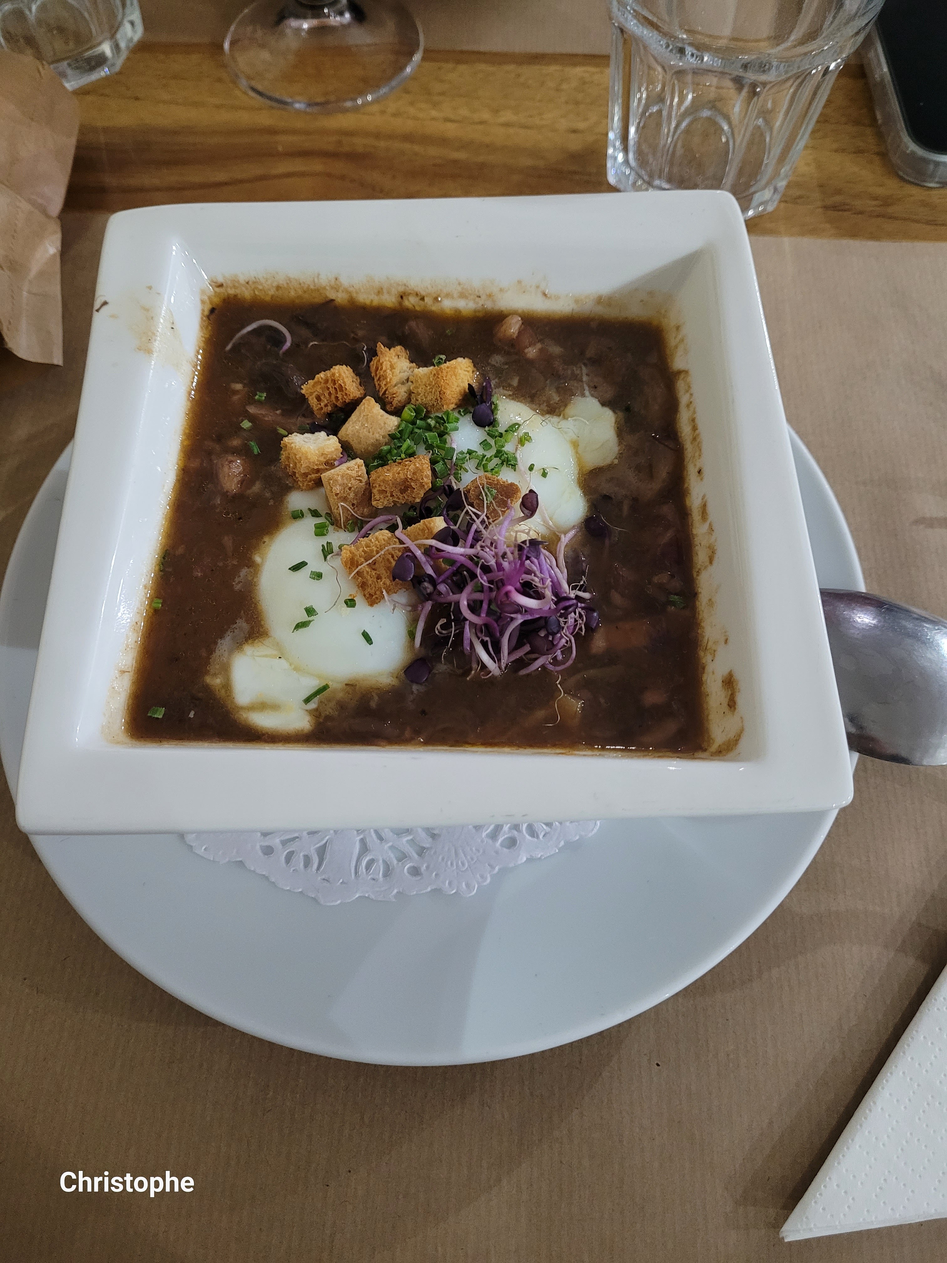 J’ai découvert ce lieu par hasard un midi la semaine dernière, j’y suis revenue 2 jours plus tard. Une cuisine française de qualité, le potage saint germain divain, le feuilleté au jambon.....🍽🍴🥄🙂