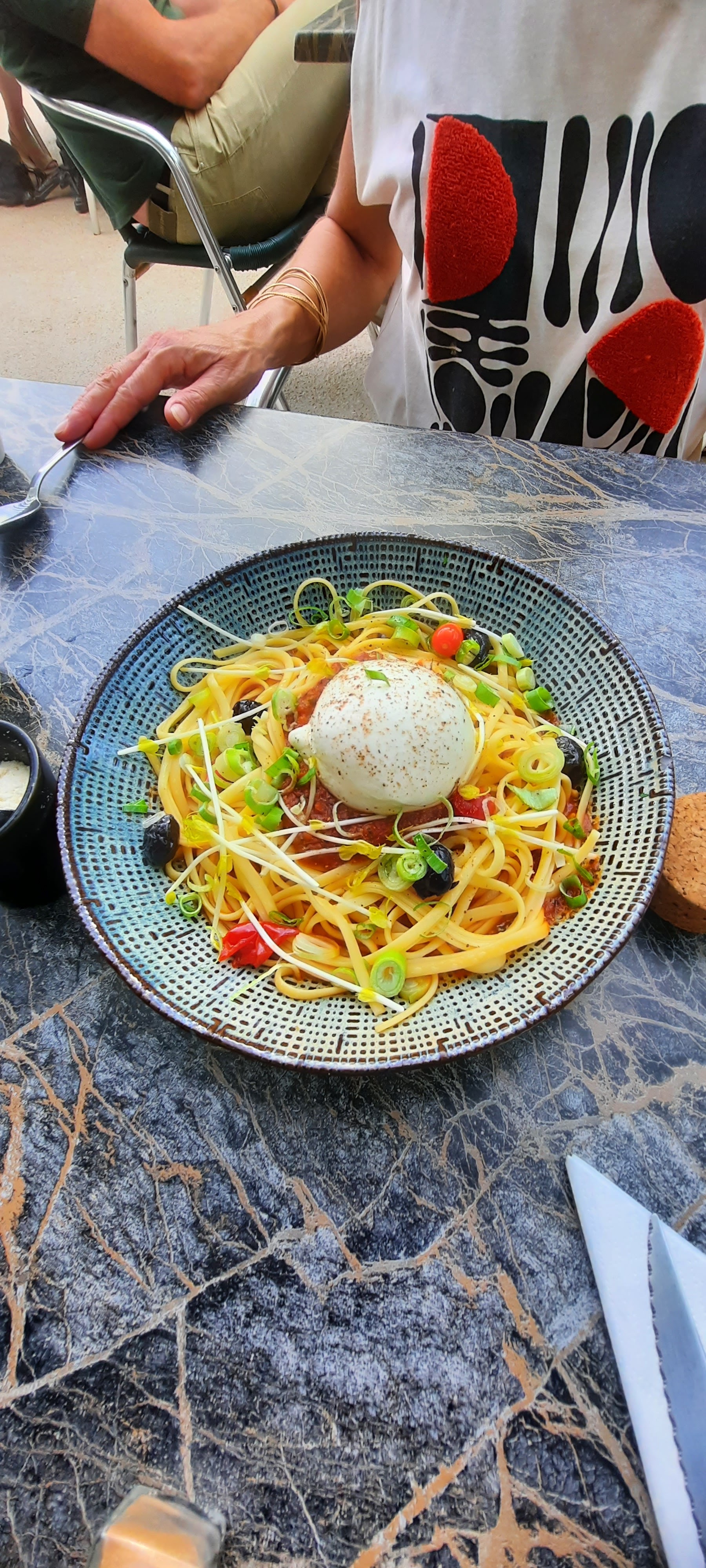 Restaurant sympathique, sur la terrasse, on n 'imagine pas que la rue est à côté, calme, frais avec la brumisation, personnel très agréable, les tables ne sont pas collées les unes aux autres ! Carte intéressante, variée. Bon moment passé avec une amie.
