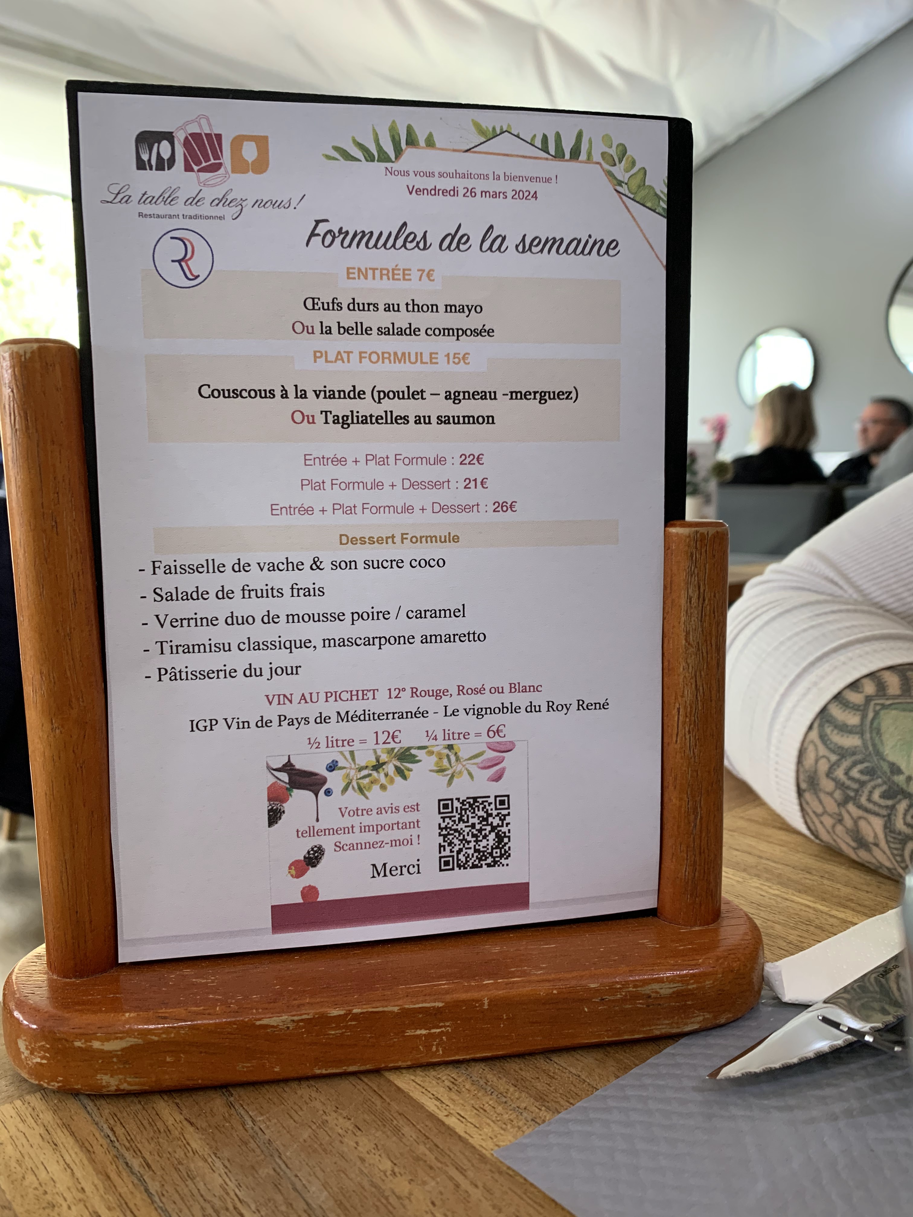 Très bon accueil avec un service agréable, souriant et rapide malgré le monde, très professionnel. Lieu charmant et convivial où la cuisine est généreuse et excellente. De très bons produits et savamment cuisinés afin que les saveurs se fondent en bouche . Bravo. Niveau qualité prix rien à dire. Merci pour votre table qui effectivement porte bien son nom : la table de chez nous .. On a hâte d’y retourner..