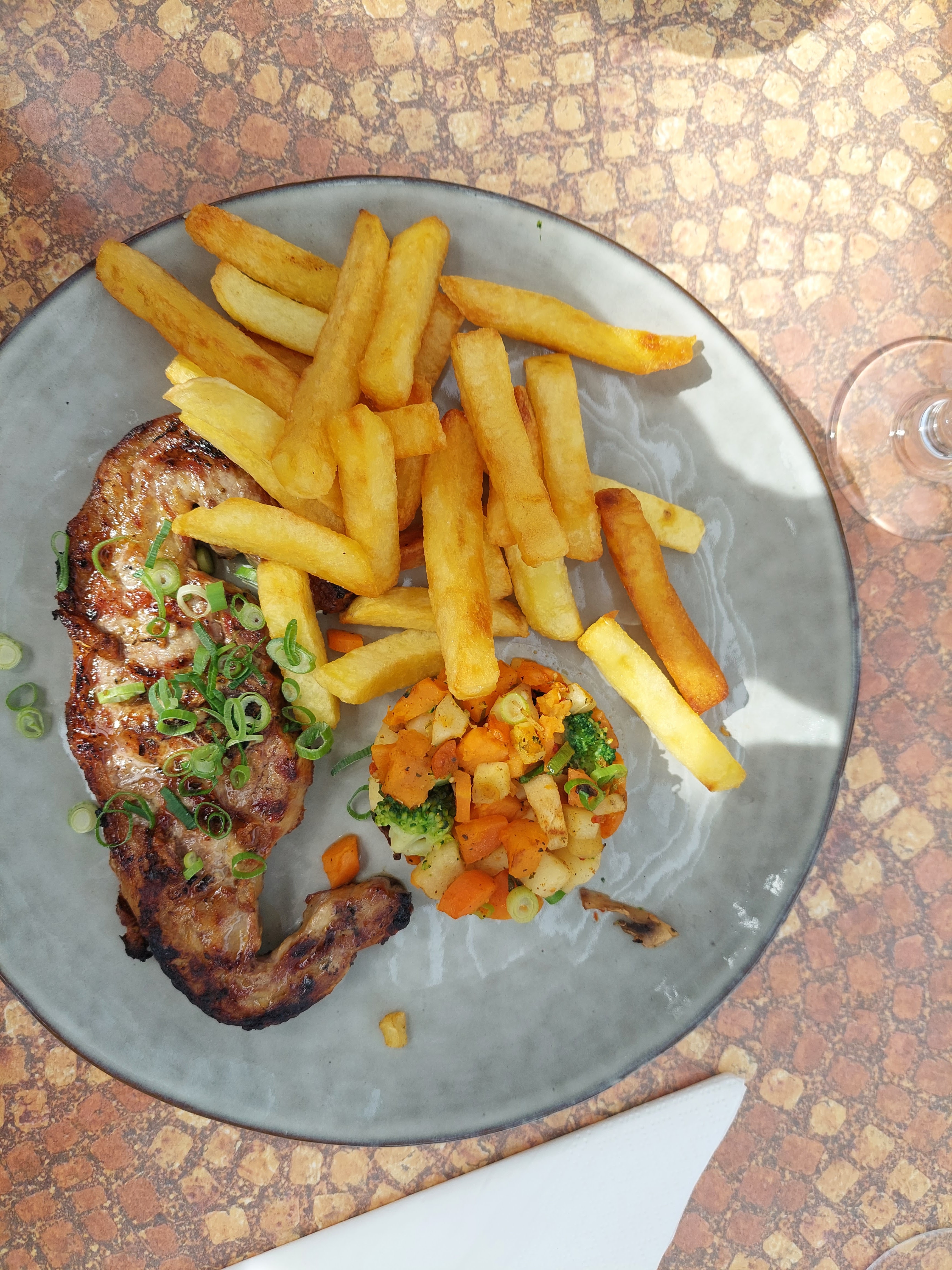 Très bonne surprise. Produits de qualité, (exemple côtelettes d'agneau), frais et service agréable et souriant. Terrasse agréable. Bon rapport qualité prix. A refaire.