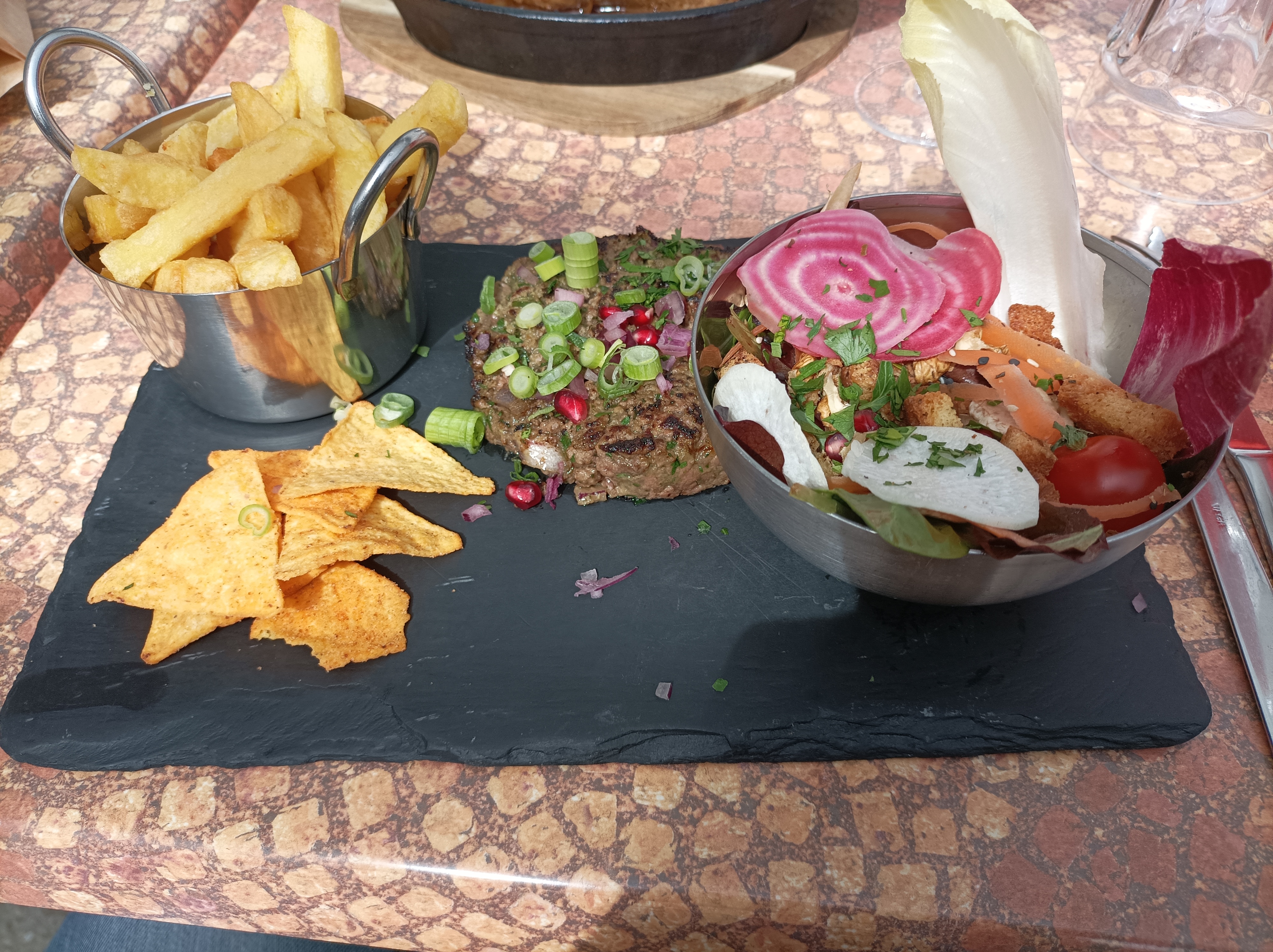 Cadre très joli, accueil agréable, service rapide, assiettes joliment présentées, plat pas trop mal mais j ai trouvé un goût d huile rance pour les cuissons poêlée ou à la plancha. Le rapport qualité prix serait à revoir à la baisse.