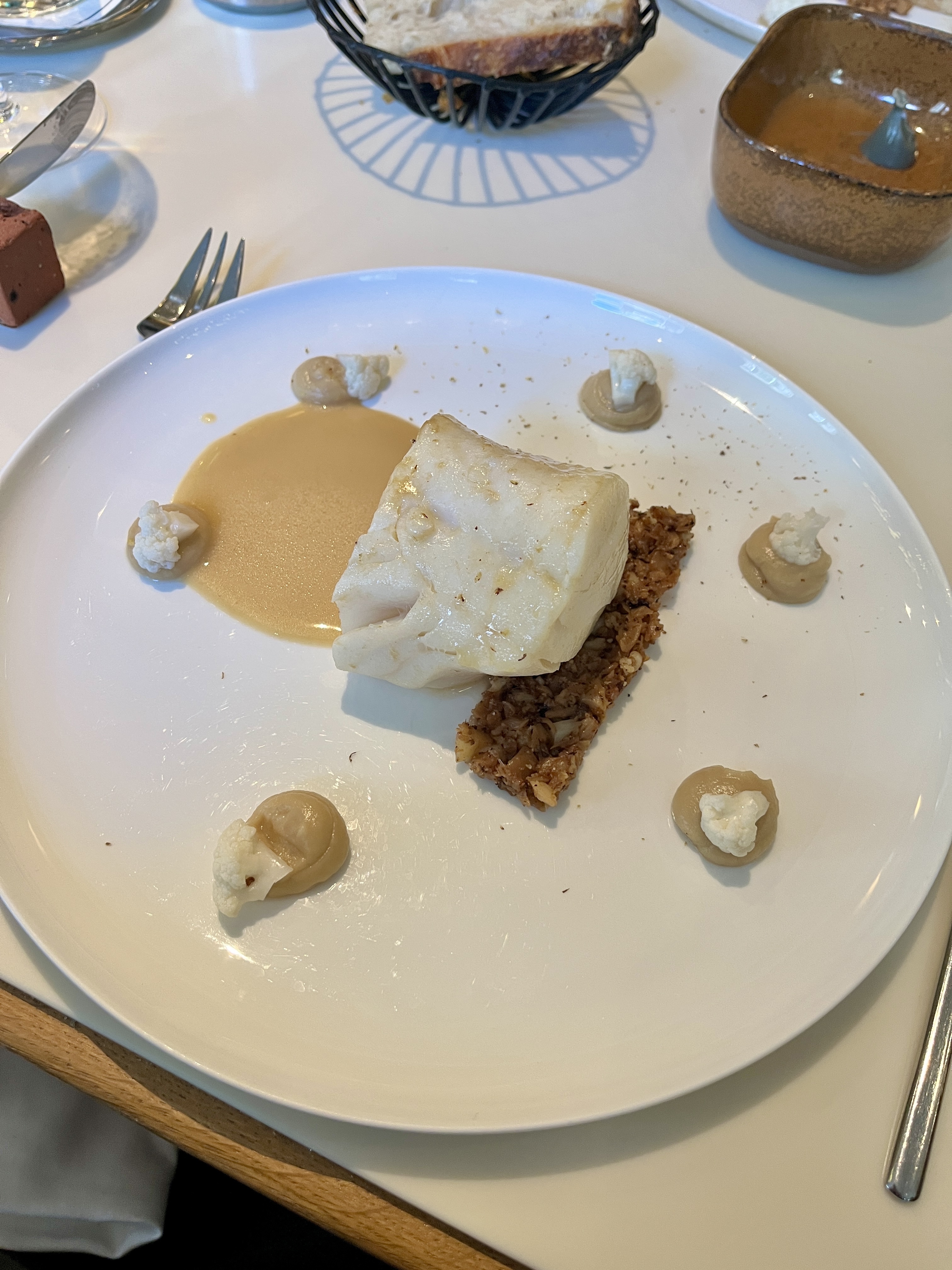 Bravo au Chef. Les plats sont aussi bons que beaux. Des associations de saveurs élaborées. Des mets de qualité et nobles. Très beau cadre. Tables espacées qui confèrent suffisamment d'intimité. J'aurais volontiers donné 5 étoiles si le personnel de salle avait été à l'écoute. La personne parle trop vite et un des convives a précisé qu'il ne supportait pas les ris de veau... et son plat en contenait. Attention !
