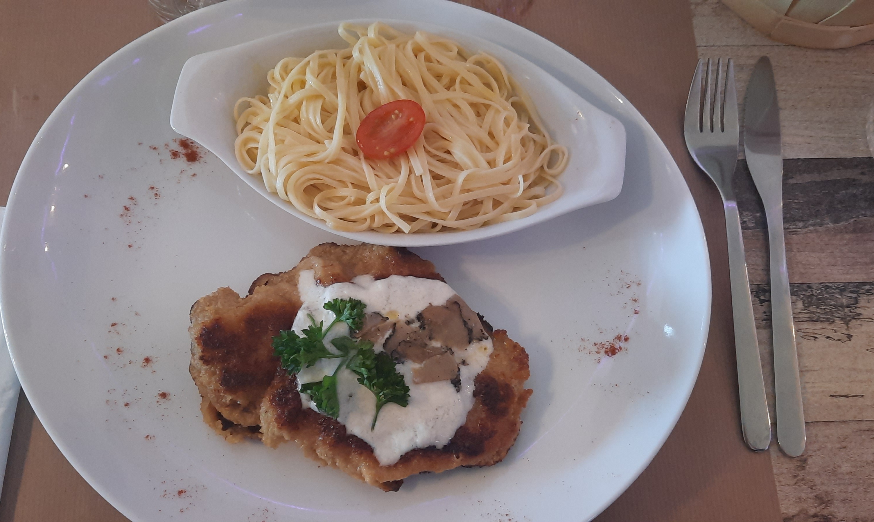 Nous avons passés un très bon moment , le repas été délicieux (mention special pour l escalope milanaise straciatella truffe un délice !!) De plus le jeune serveur est très agréable. Je recommande fortement ce restaurant !!!!!