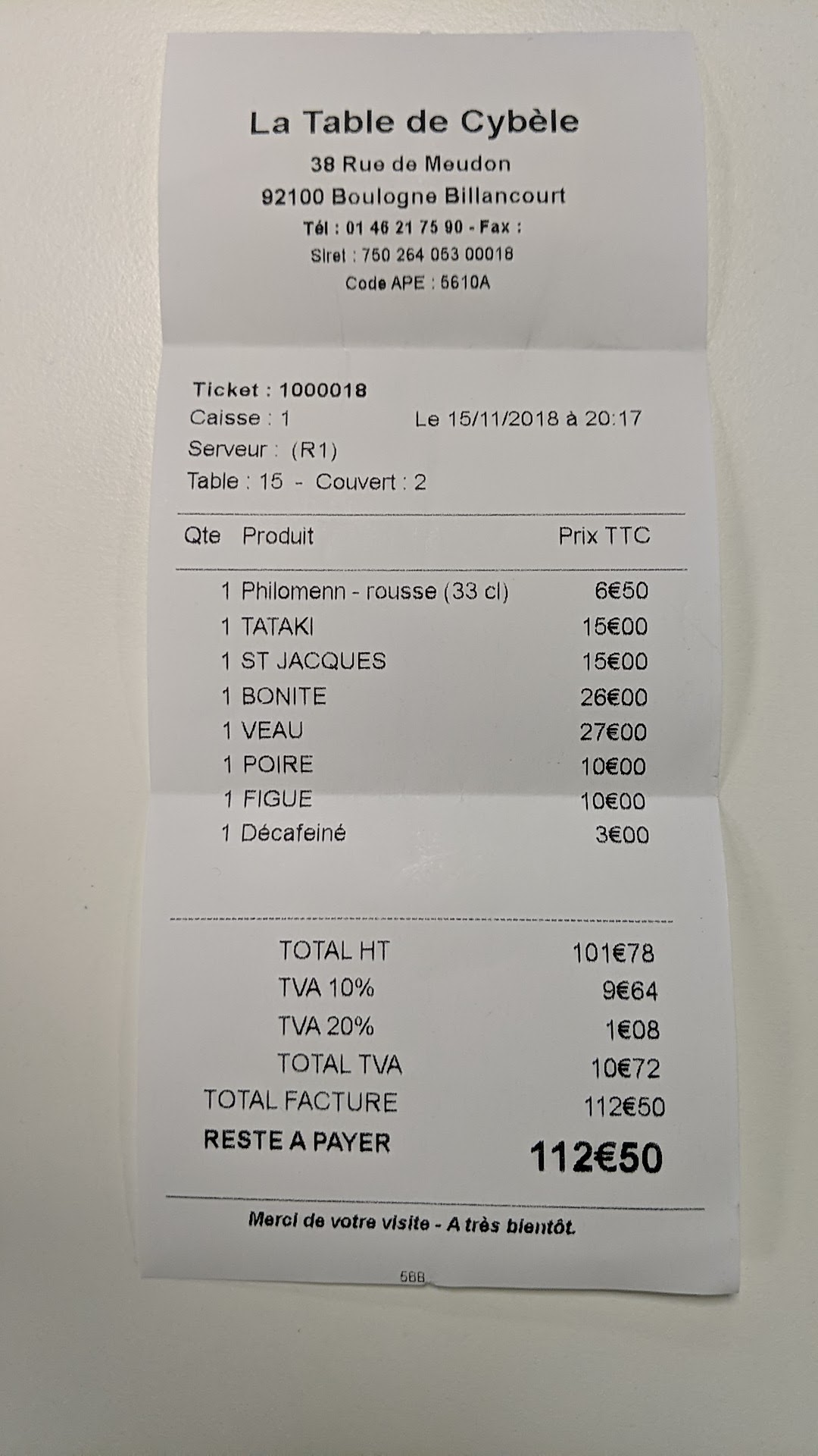 Habitués de La Table de Cybele nous ne sommes jamais déçus : un sans faute chaque fois. La meilleure table de Boulogne