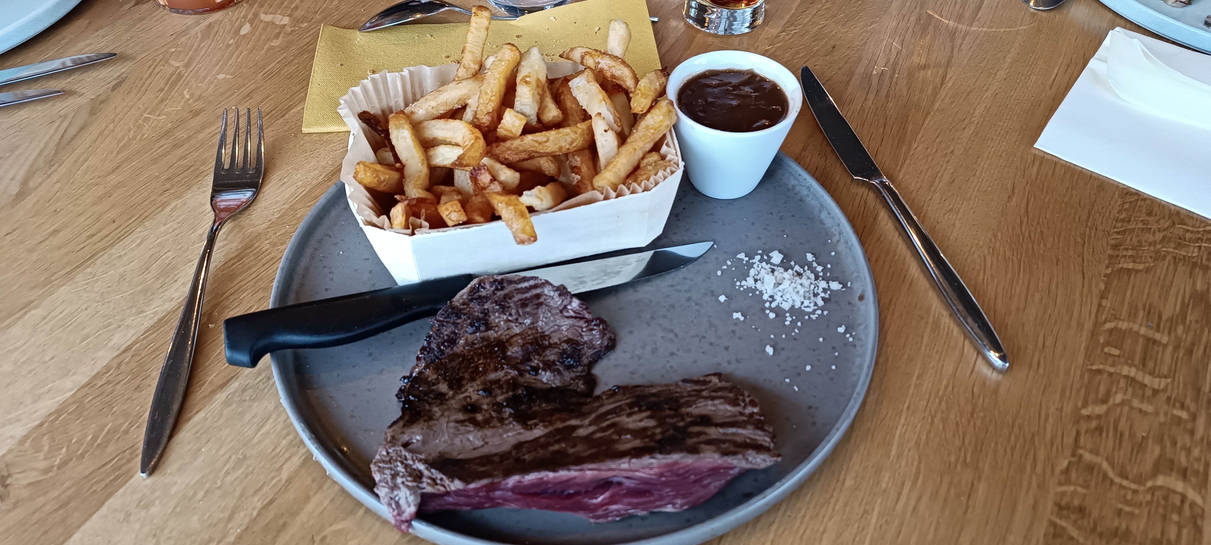 Beau restaurant mais cuisine pas terrible, hamburger pas terrible, shurros pas cuit, grillé, et chocolat pas bon. J ai connus ce restaurant il y a 5 ans la qualité des repas était mieux. Par contre service très bien. Un conseil il serait peut être bien de prendre les tickets restaurant.