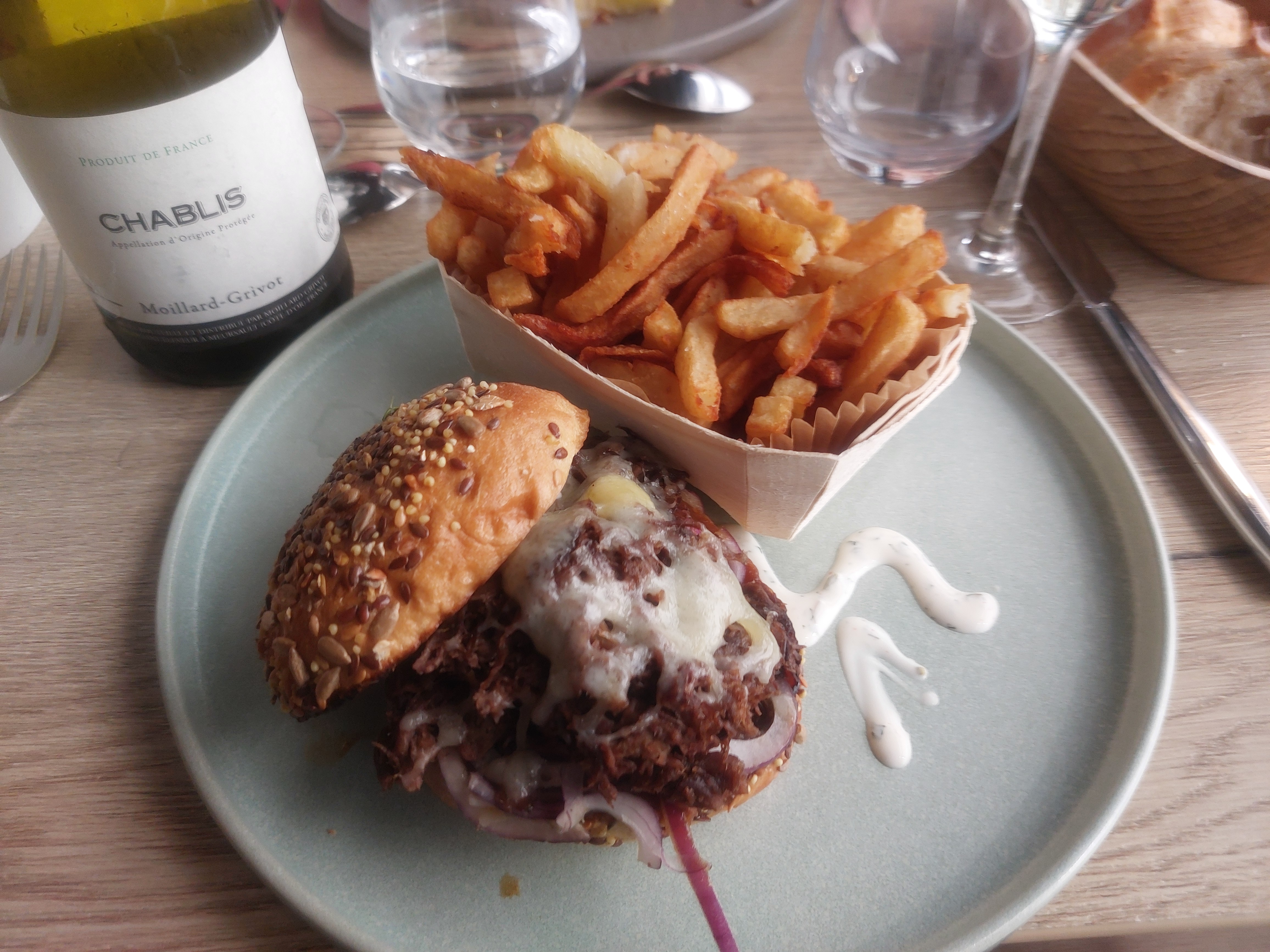 J'ai eu honte d'y amener des amis gourmets et oenologues. Hormis la vue aucun intérêt ! On ne vous propose pas l'apéritif, pas d'entrée, hamburger en guise de plat ou plats probablement décongelé. La machine à cb etant en panne on veut faire une photocopie de votre cni! En tant que proprietaire de chambres d'hôtes à Forges je déconseille cet établissement