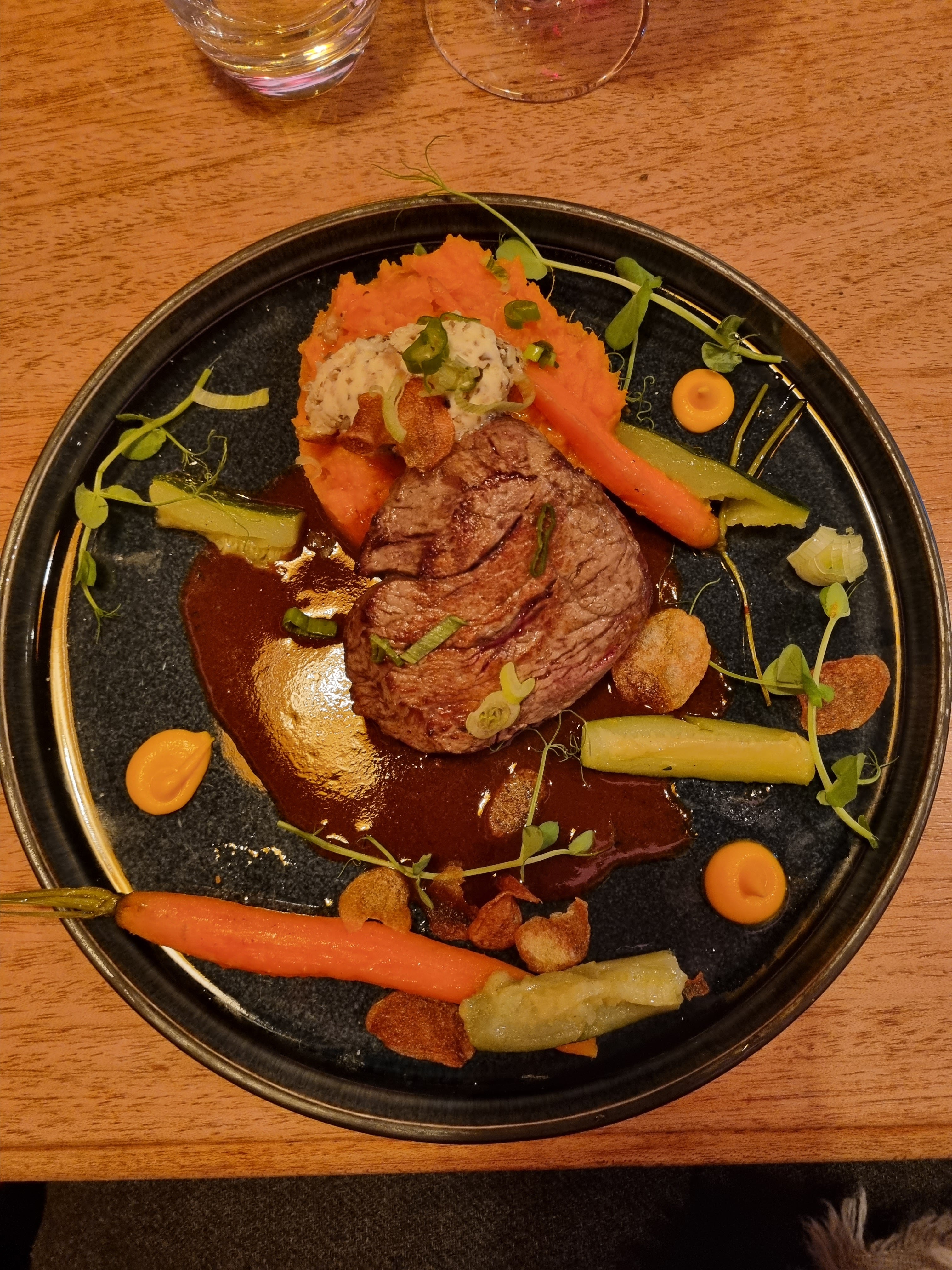 Un dîner presque parfait ;) un lieu chaleureux surtout la petite salle. Une équipe avec des jeunes passionnés par le métier. Le filets de bœuf était parfait accompagné de petits légumes oubliés, félicitation au chef. Un petit mais pour le dessert un peu déçu par le chiboust de patate douce peut être trop dans l'attente d'une découverte gustative incroyable.. C était la première dans cet établissement et pas la dernière 👍