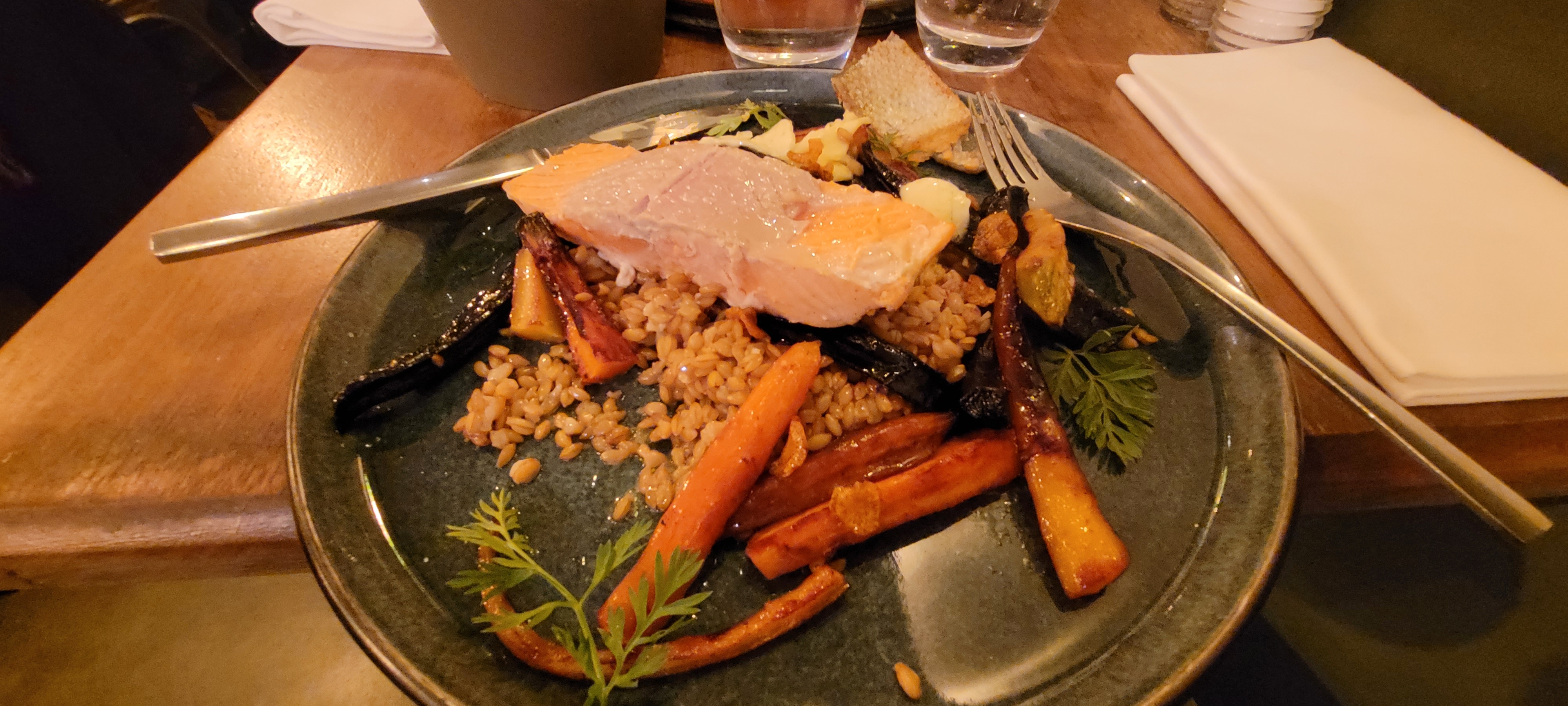 Cuisine très ensoleillée et healthy avec beaucoup de légumes. C'était très bon, toutefois, pour mon entrée le nid de pommes de terre était quasi- brûlé.