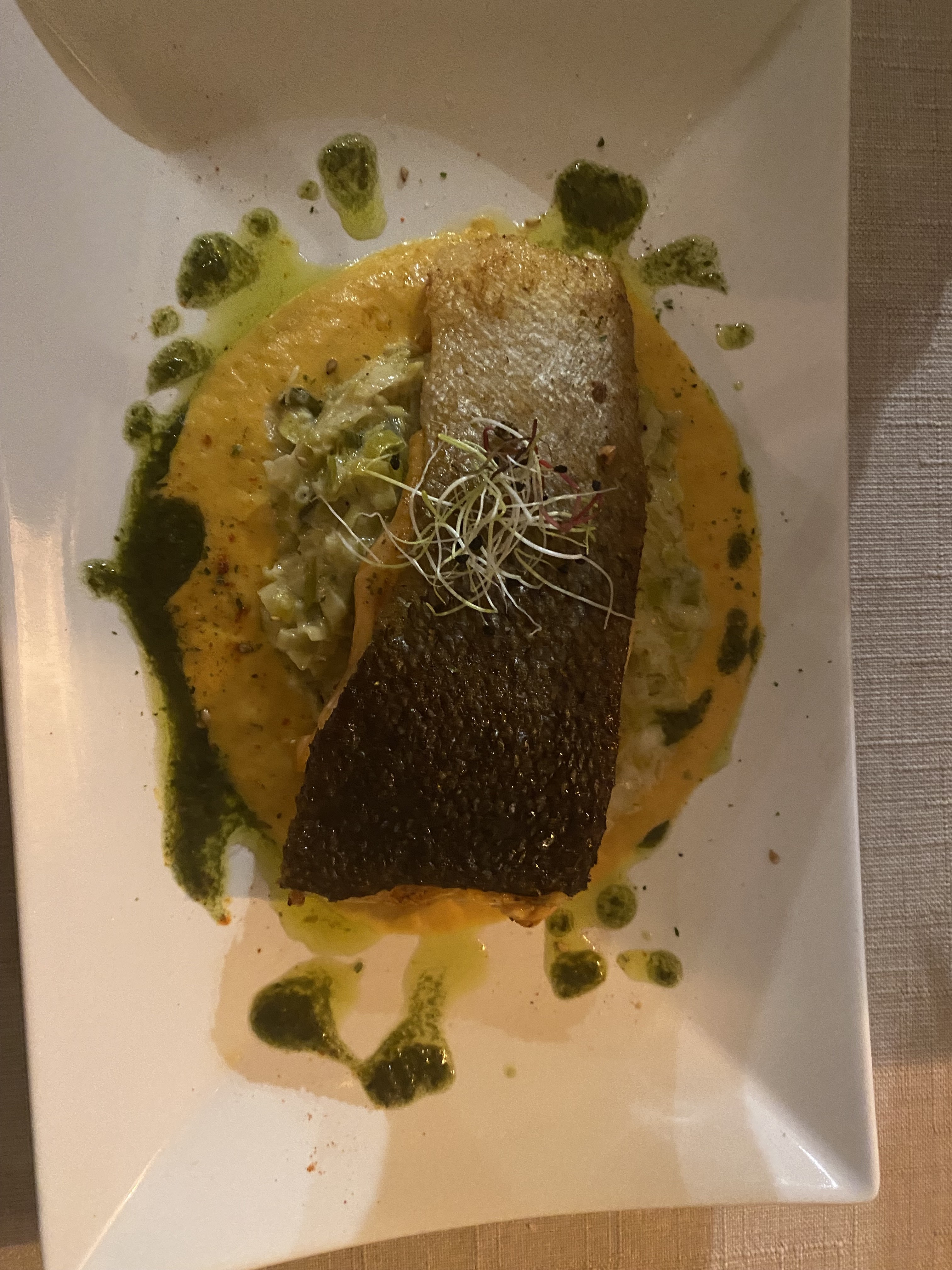 Très belle expérience dans ce restaurant. L’accueil est très chaleureux, les plats délicieux et le vin parfait. Il manquait juste peut être quelques légumes.