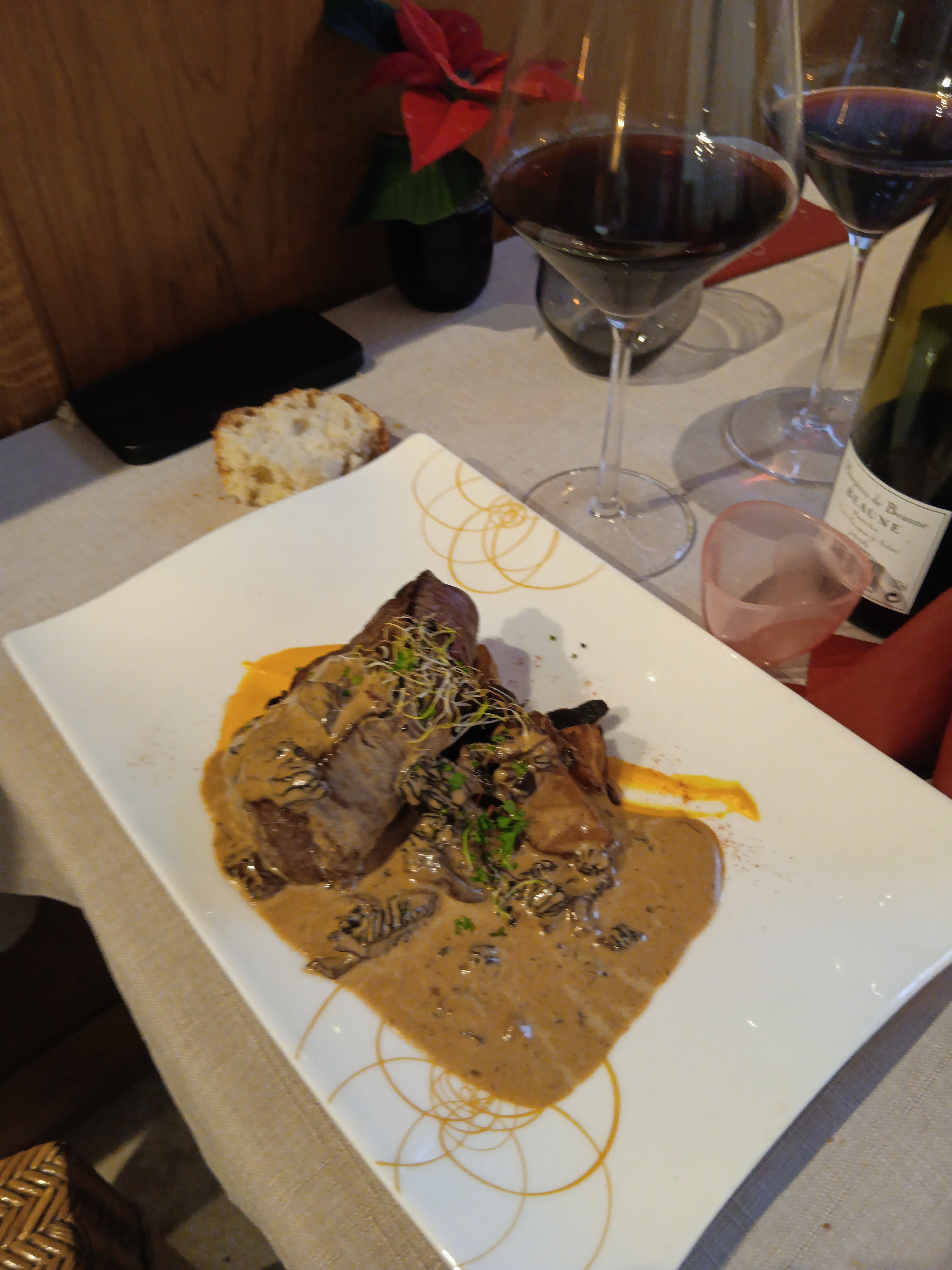 De passage à Beaune, nous avons découvert cette table : accueil très agréable, ambiance chaleureuse, assiettes satisfaisant autant les yeux que les papilles. Vraiment parfait !