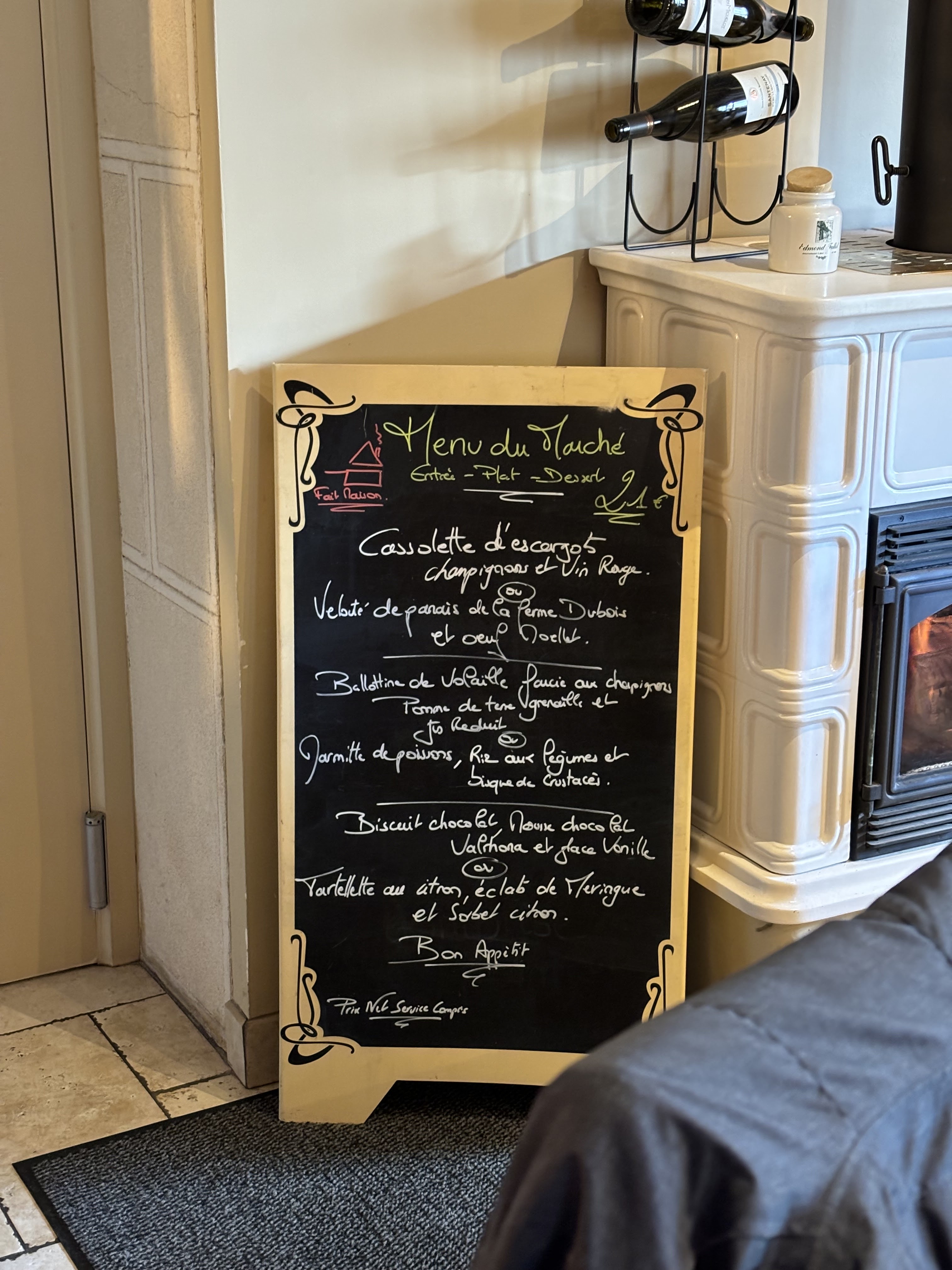 Tout simplement parfait Le lieu est chaleureux, la décoration est simple mais réfléchie pour créer une très belle harmonie, entre pierres, bois et cheminée des votre arrivée vous vous sentirez bien. Les plats sont tout simplement excellents entre le velouté de potimarron les escargots frais ce qui malheureusement est rare ! Le poisson du jour (hier soir de la dorade royale avec sauce du curry, purée de brocolis et panais) et le fondant au chocolat un délice accompagné de sa boule de la glace à la framboise comme si les framboises venaient d'être ramassées. Et des propriétaires très avenants et de bons conseils que nous allons tester des aujourd'hui ;-) merci à vous pour ce délicieux moment. Ne passez pas à côté vous manqueriez un lieu incontournable de Beaune.
