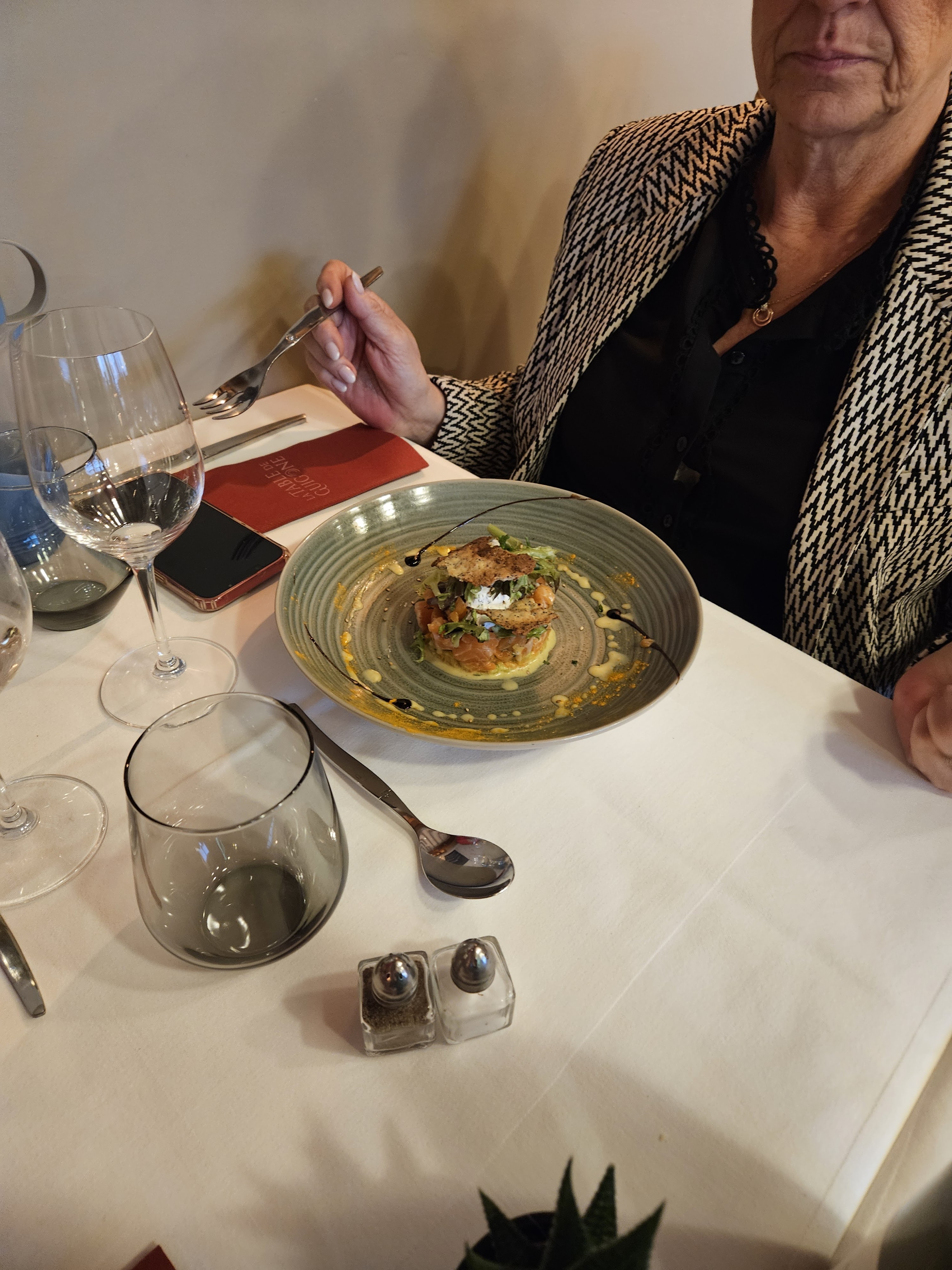 Un bon repas autour de bons vins, une attention particulière par rapport à mon intolérance (lactose), tout s'est très bien passé, nous retournerons volontiers manger à la Table de Guigone.