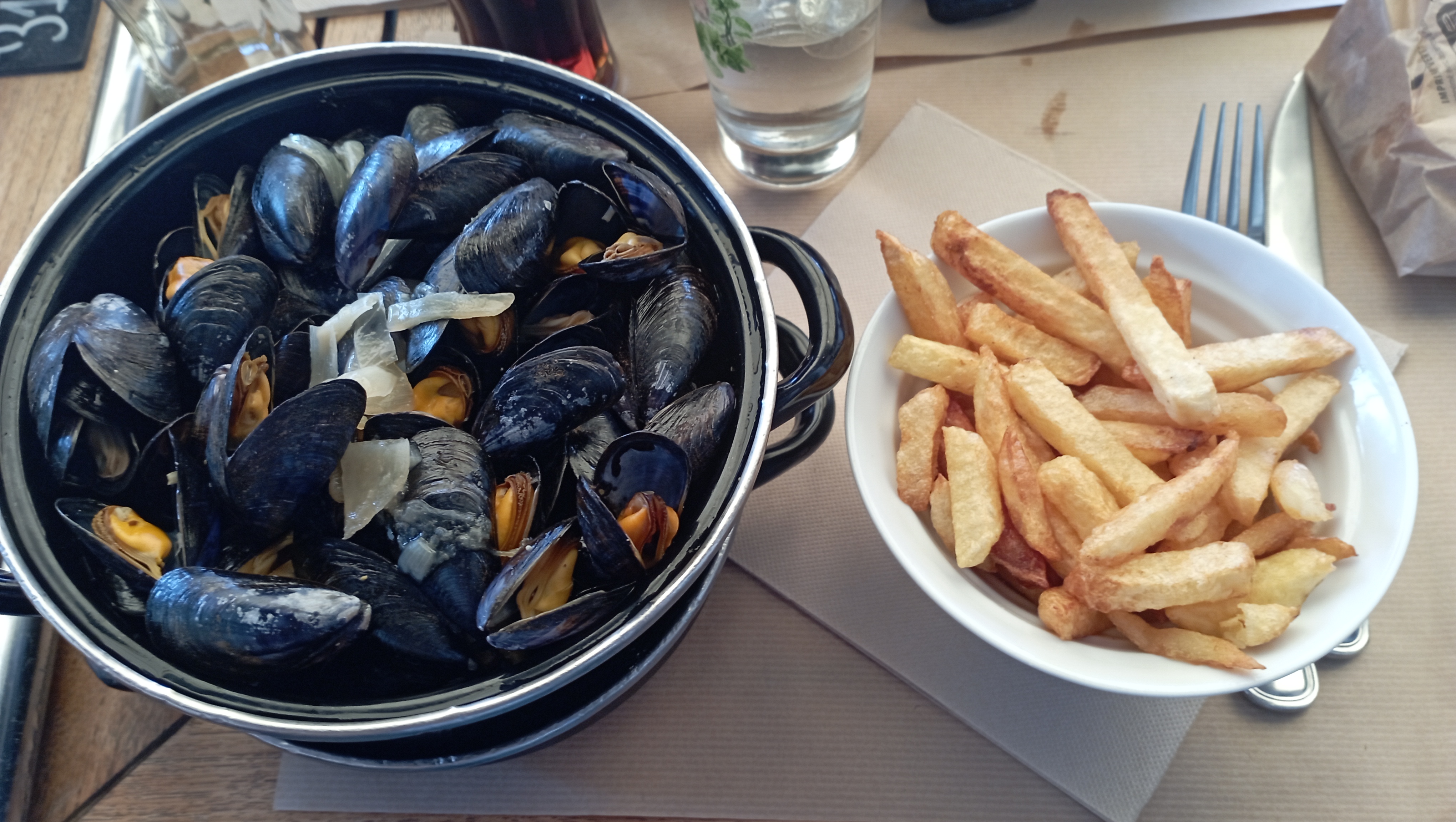 Nourriture très bonne 👍 Néanmoins le service n’est pas très organiser une seule personne qui prend les commandes et ce qui fait attendre presque 2h00 pour le repas .. Merci à la dame qui débarrasse les coquilles de moules vide 👍