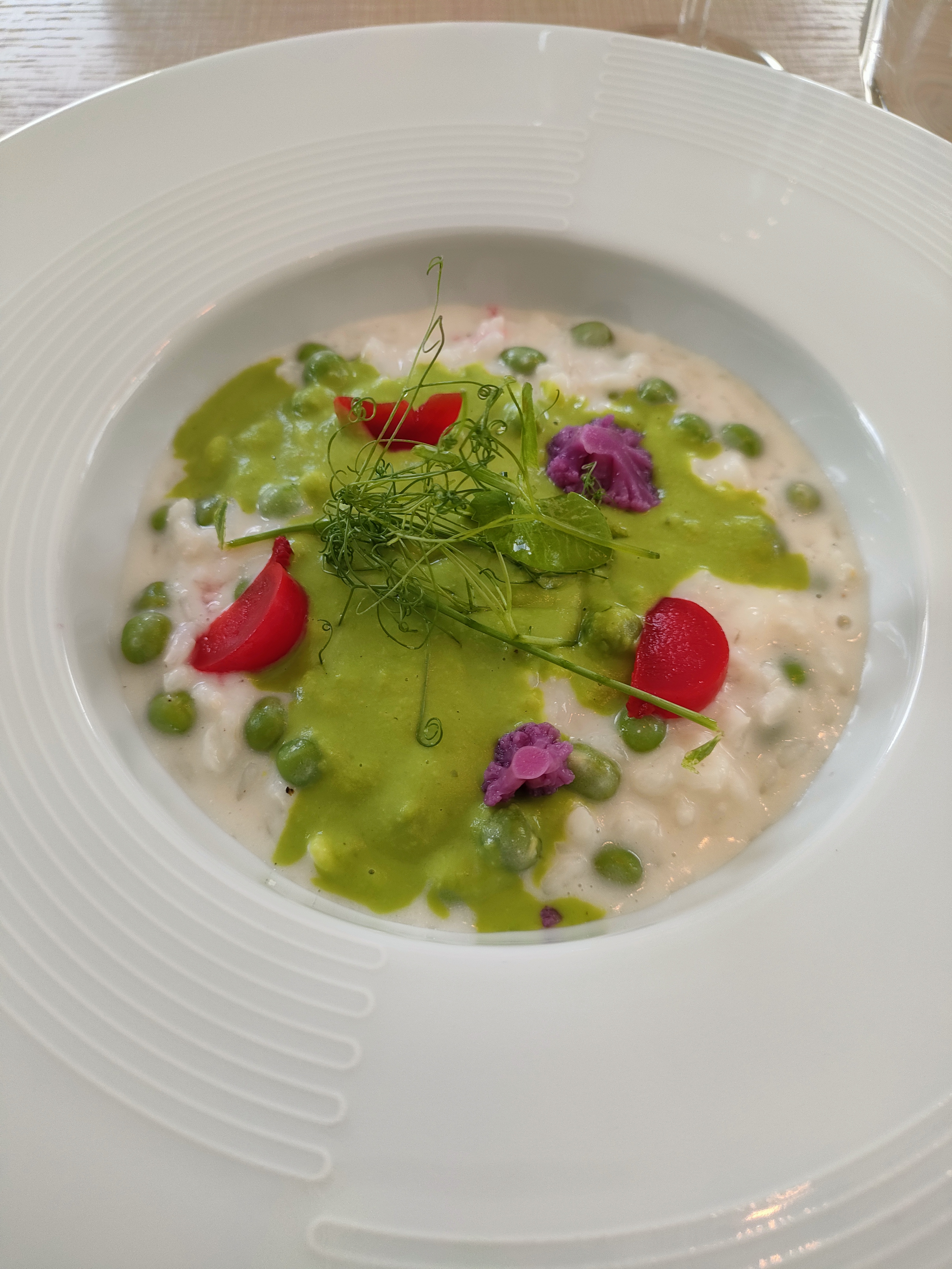 Repas délicieux concocté avec art en combinant saveurs textures couleurs et touches décoratives originales. Un régal ! Un chef très sympathique qui vous explique tout....Bravo !!