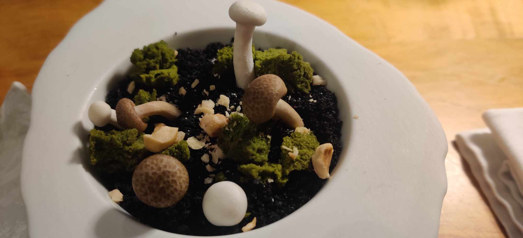Excellente expérience culinaire en famille. De nombreux plats originaux, surtout le dessert avec les champignons. Tout était parfait !