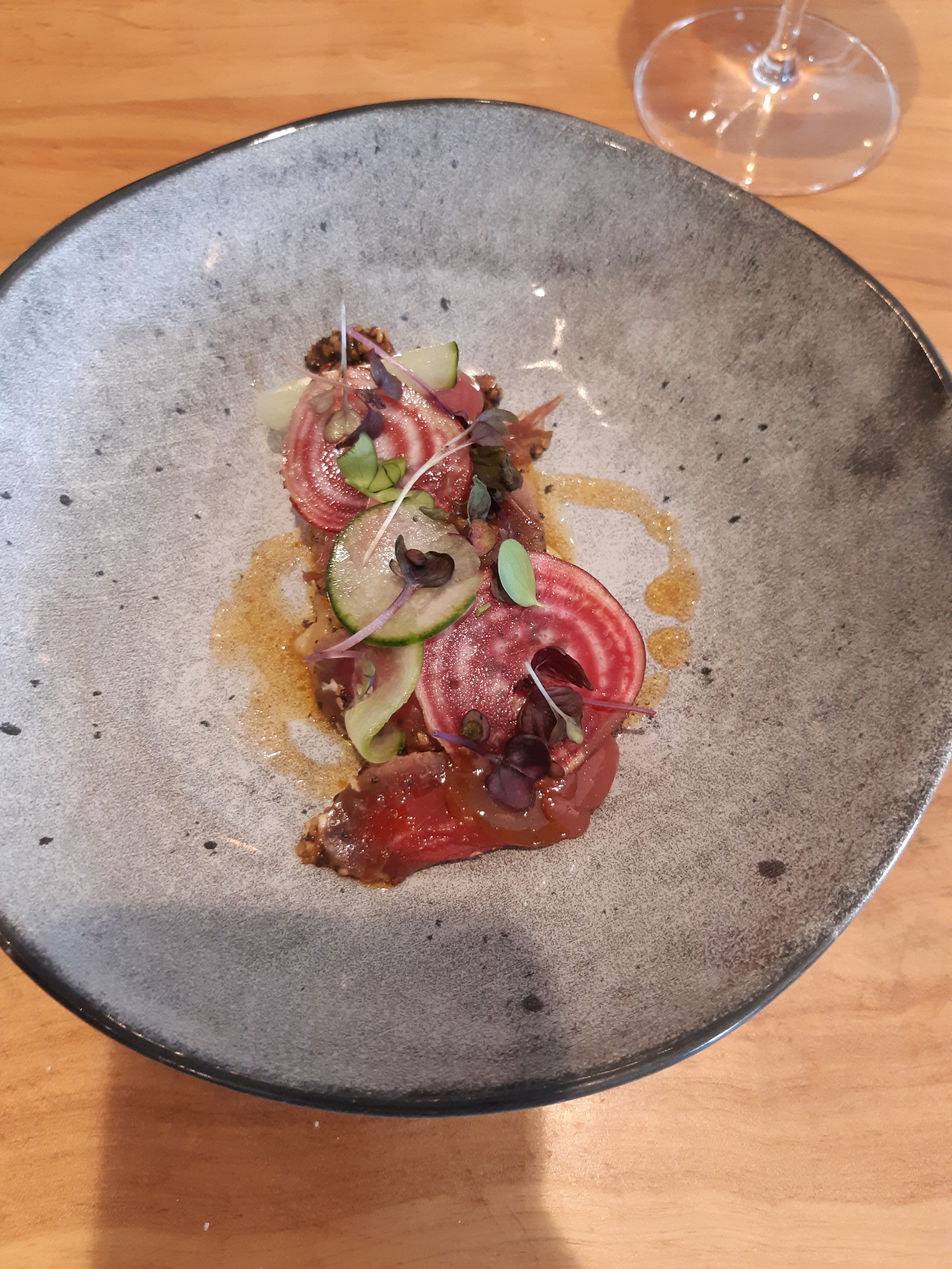 Cuisine raffinée,inventive. Jolie vaisselle. Personnel adorable et très attentionné.