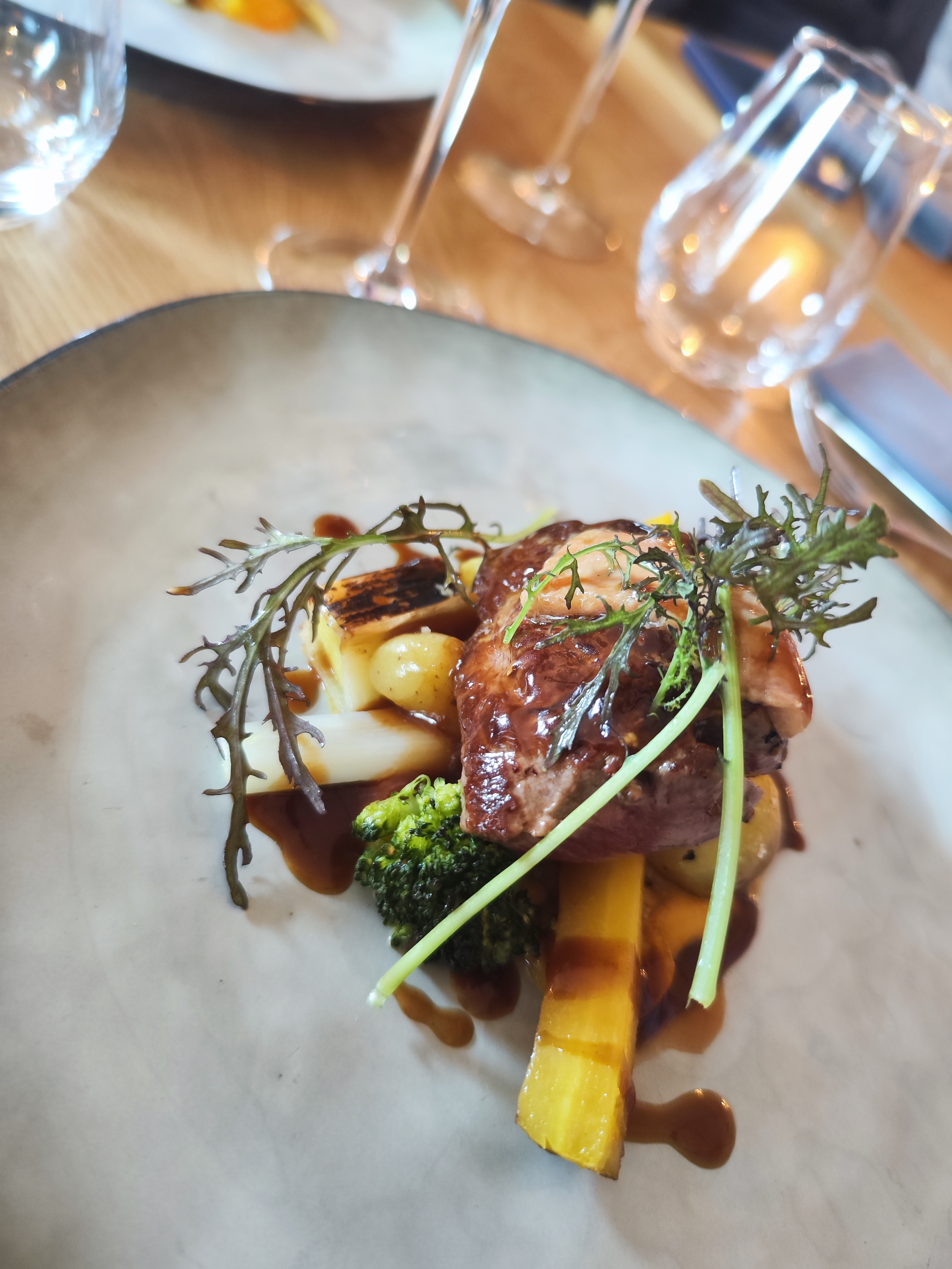 Excellente découverte sur la route du week-end. Un cadre chaleureux, du personnel jeune, compétent et efficace. Et surtout des plats excellentissimes et raffinés. Le foie gras poêlé est divin. Je recommande chaleureusement et ne manquerai pas d’y revenir.
