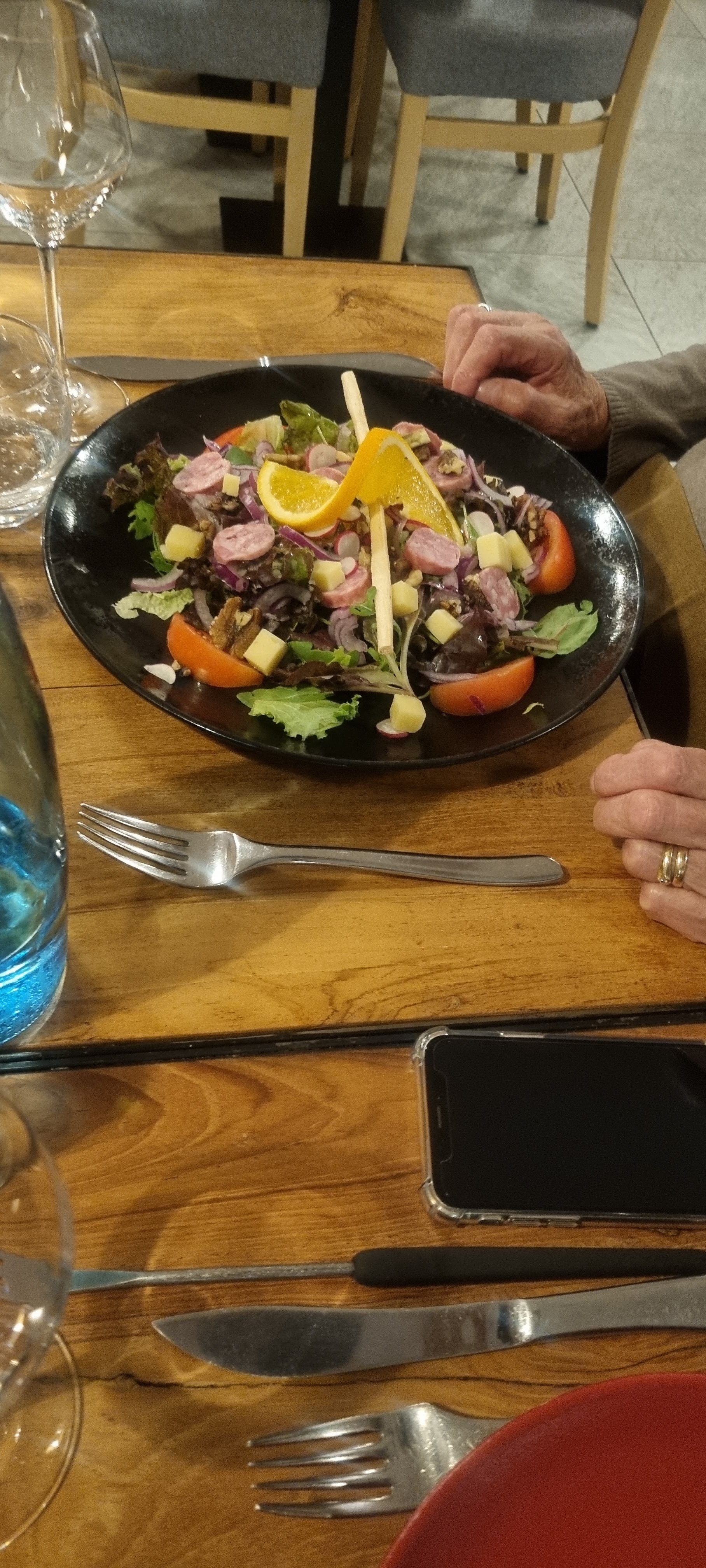 Deux repas en terrasse avec ce beau soleil de février et une vue merveilleuse. Très bien, je recommande.