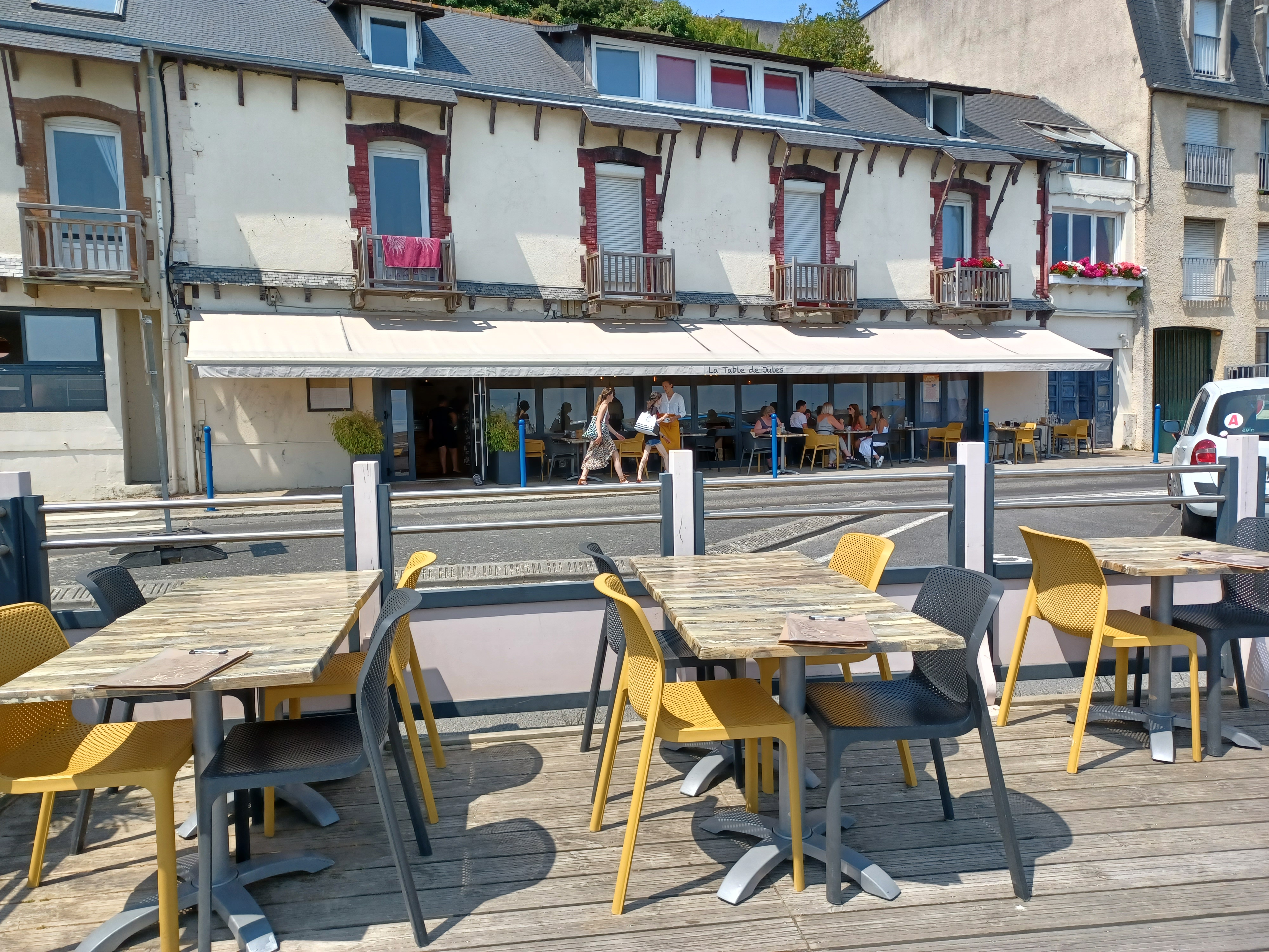 Ce petit restaurant mérite que l on s y arrête. Classe petite maison donc oriduit frais et cuisine faite maison. On n est pas déçu, vraiment les plats sont bien travaillés et de qualité avec un excellent rendu de saveur Pour avoir pris un ris de veau j ai apprécié le travail et la présentation du produit. C était délicieux, vos papilles apprécieront et l ensemble du personnel fait tout pour rendre votre moment agréable. Je vous conseille cet endroit. Et pour ceux qui suivent certains de mes avis, quand c ewt bien je le fais savoir et quand ce n est pas bien pareil. Je fais en sorte que les établissements qui se donnent du mal à bien nous recevoir et nous préparer des plats délicieux meritent que l on se transmettent leur bonnes adresses quand à ceux qui se moquent des gens ou ne font aucun effort en nous faisant une cuisine passable voir immonde ou jusqu au lieu d aisance c est deplorable alors oui il faut informer tout le monde pour éviter de s y faire piéger et perdre du temps, de l argent, du plaisir et ce moment de détente si agréable quand on se délecte de succulents plats travaillés avec plaisir. J ai plaisir à rencontrer des restaurants qui se donnent et qui nous donnent leur passion de la cuisine Merci à tous ces bons restaurateurs et à leurs personnels tout autant important. N hesitez pas vous pouvez allez à la table de Jules à Binic quai Surcouf.