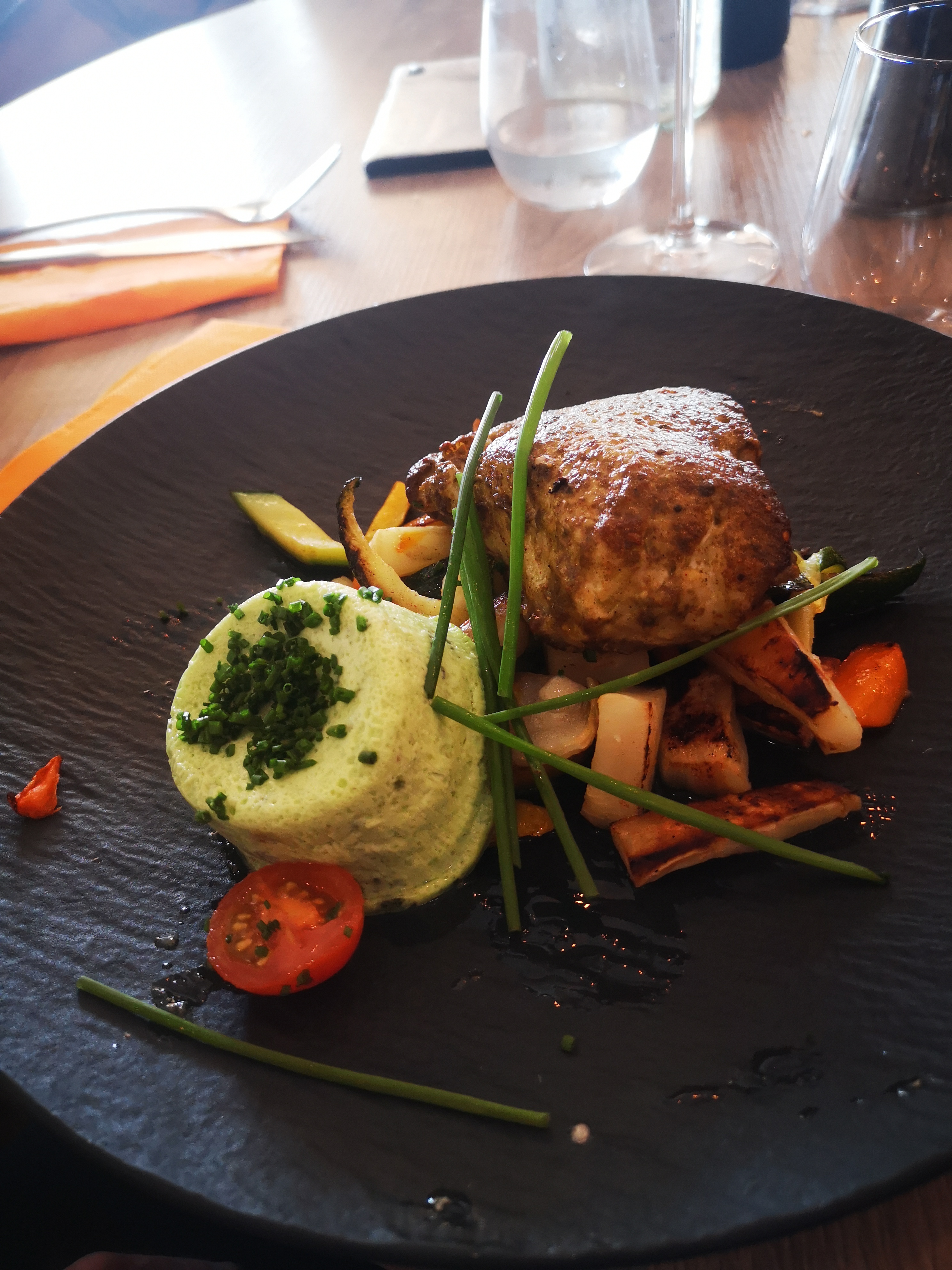 Service un peut long mais excusable jour de marché. Repas excellent. Jolis assiettes.