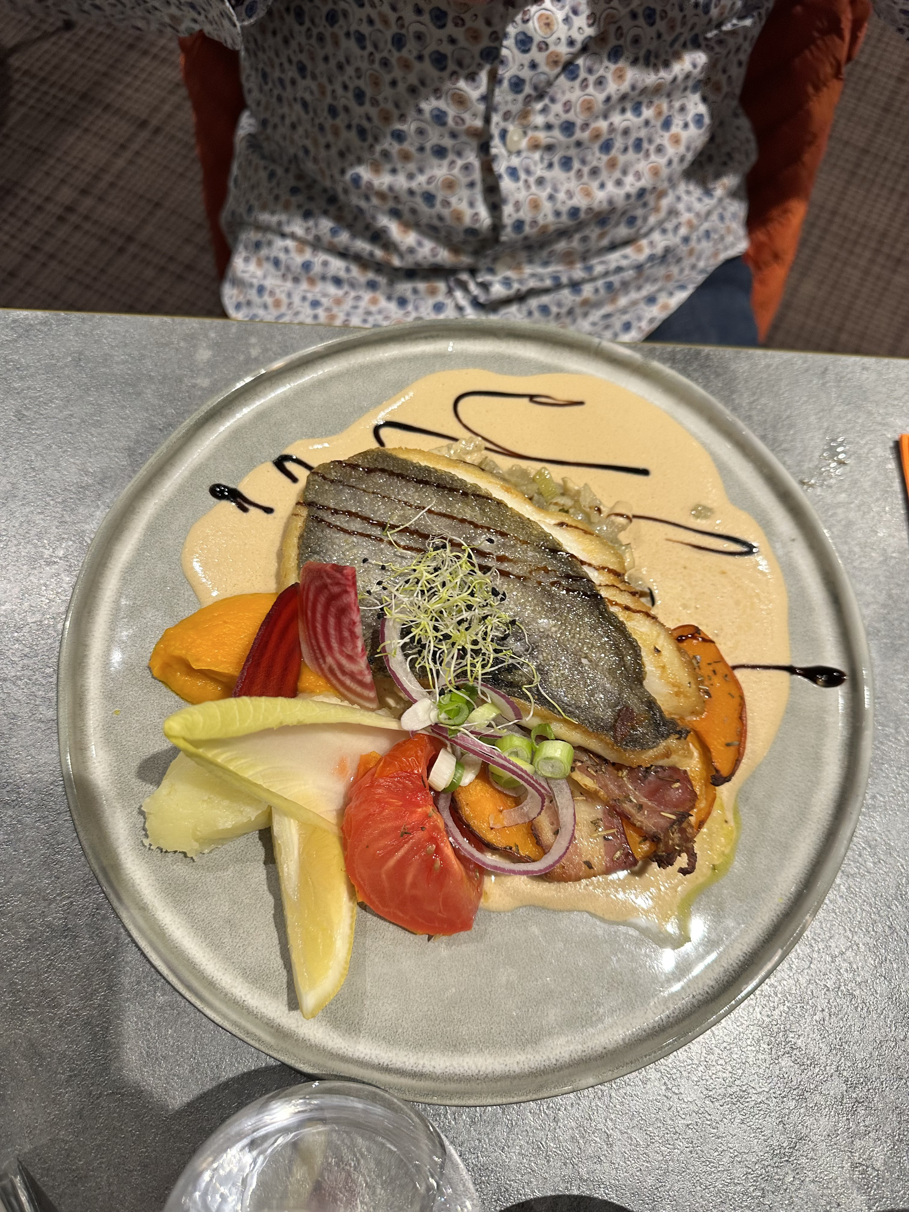 Table agréable Nous avons manger médaillons lottes et tartare de saumon. En assiette produits légumes frais de qualité. Le tartare aura était préparer avec de l’aneth et baies rosé comme appris en école hôtelière pas très originale! Quand aux médaillons de lottes avec une petit sauce safranée et tomber de fenouil les pommes de terre 🥔 n’était pas nécessaire,un plats léger et goûtu. Bémol l’attente avant que la commande soit prise! (Pensez à servir les boissons cela fait patienter le client!) Cadre soigner à l’intérieur.