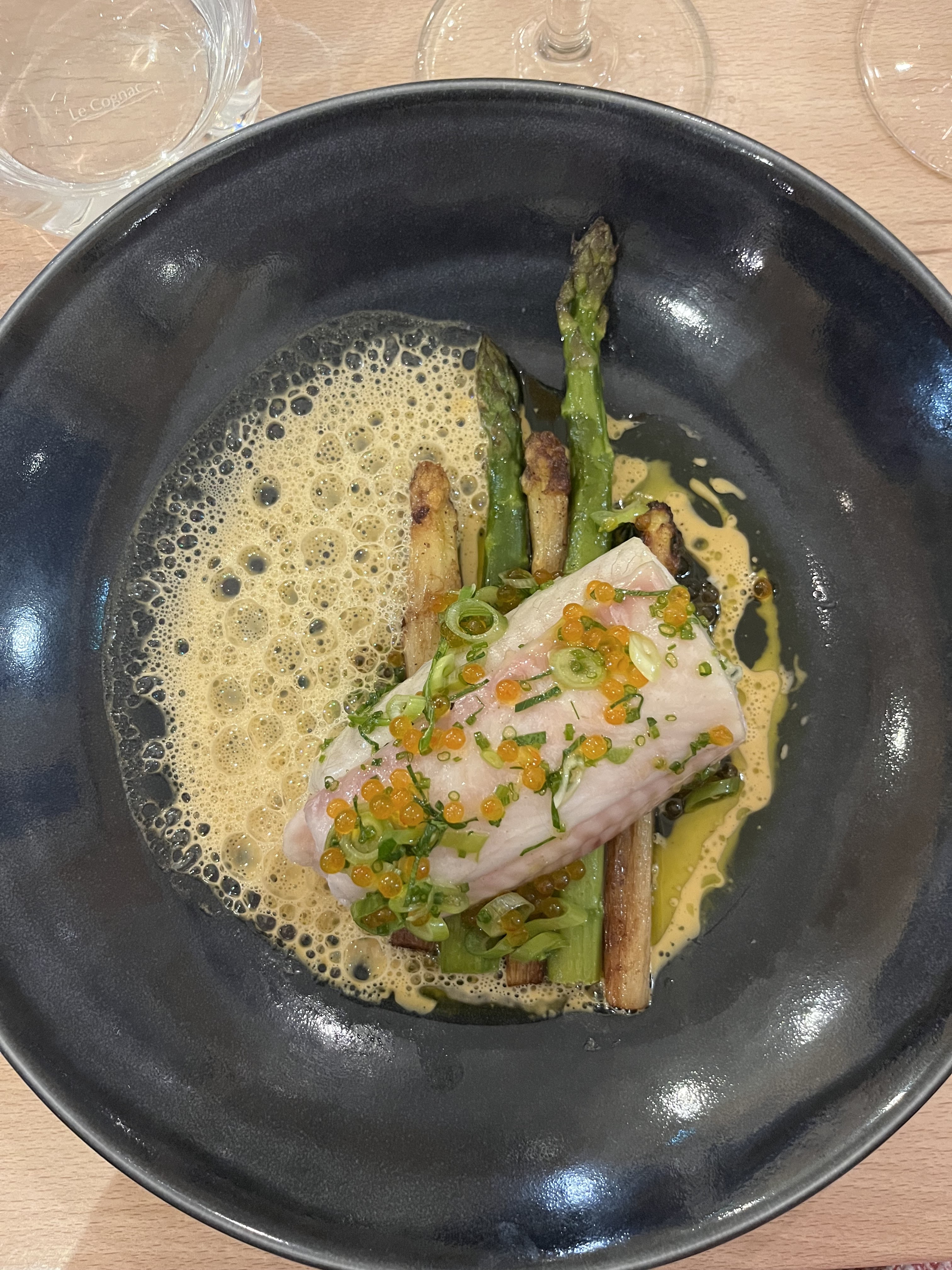 Quel beau restaurant, et quelle cuisine originale et délicieuse, service joyeux, dynamique, et chaleureux ! J'ai été très touchée car ils se surpassent vraiment pour nous régaler de façon étonnante mais simple, et s'adapter à nos besoins ! Nous avions peu de temps pour manger et malgré le nombre de personnes à servir, ils ont pu nous aider dans ce sens, vraiment chapeau ! Je leur suis très reconnaissante sur tous les plans, je suis très admirative de ces belles personnes et de ce bel endroit ! Et je recommande tout particulièrement le foie gras de canard fumé aux aiguilles de pin, sans oublier l'accompagnement du poisson du jour : petits pois et crème de langoustines ! Un régal !