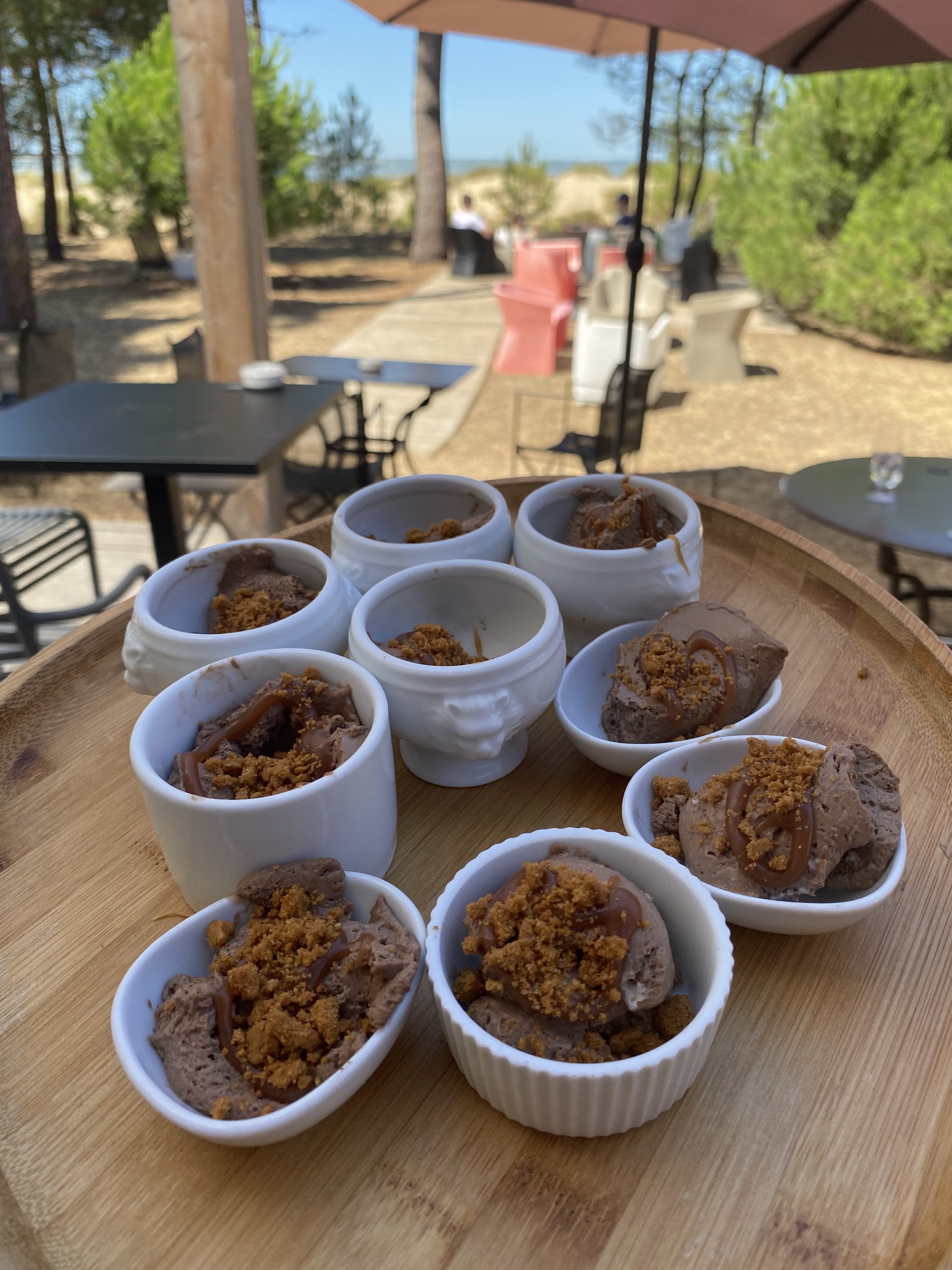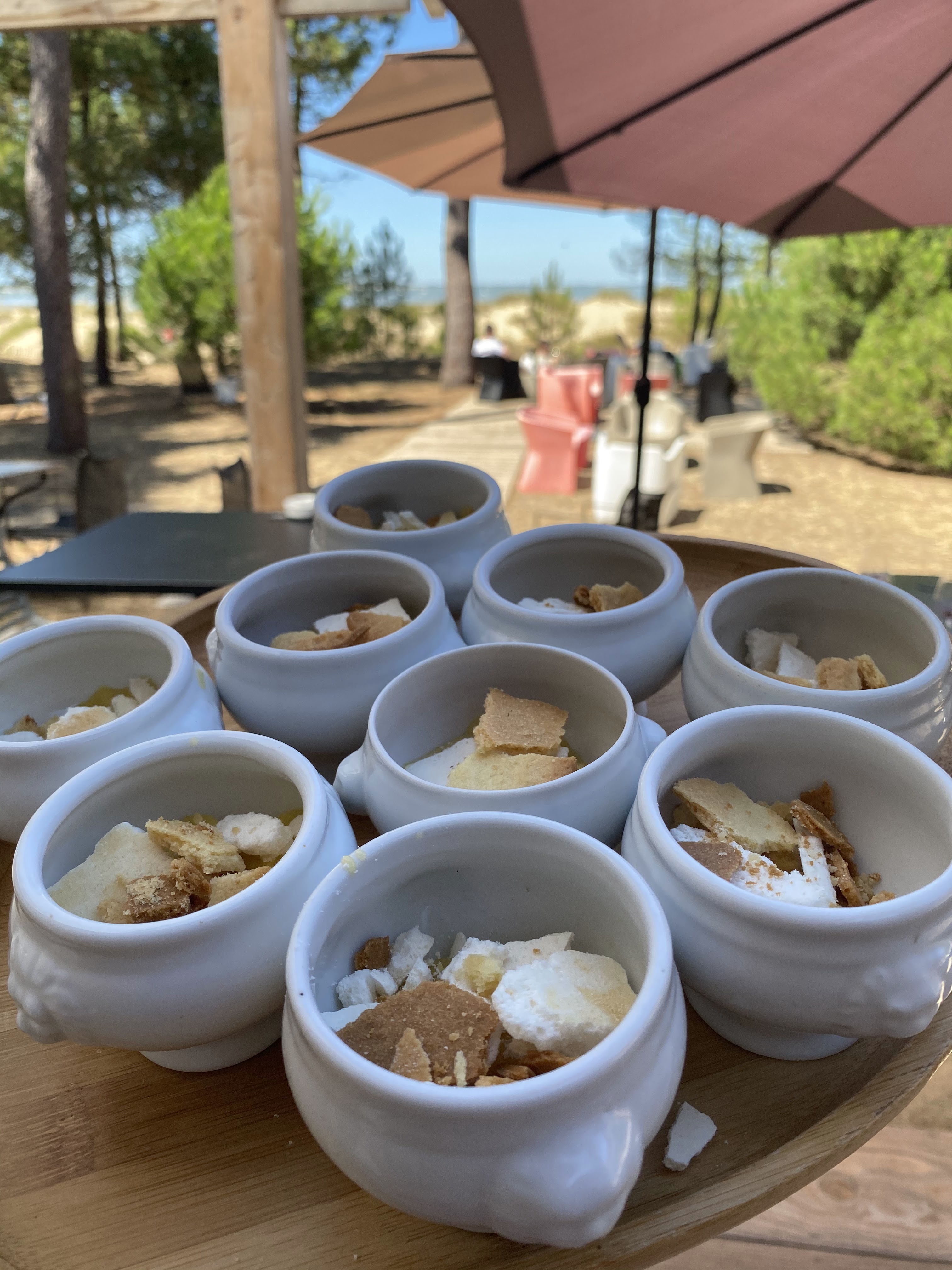 Cadre très agréable : sous les pins près de la plage. Très bon repas, carte réduite mais avec des produits frais et très bien cuisinés. Coup de coeur pour la pomme de pin chocolat grand cru en dessert.