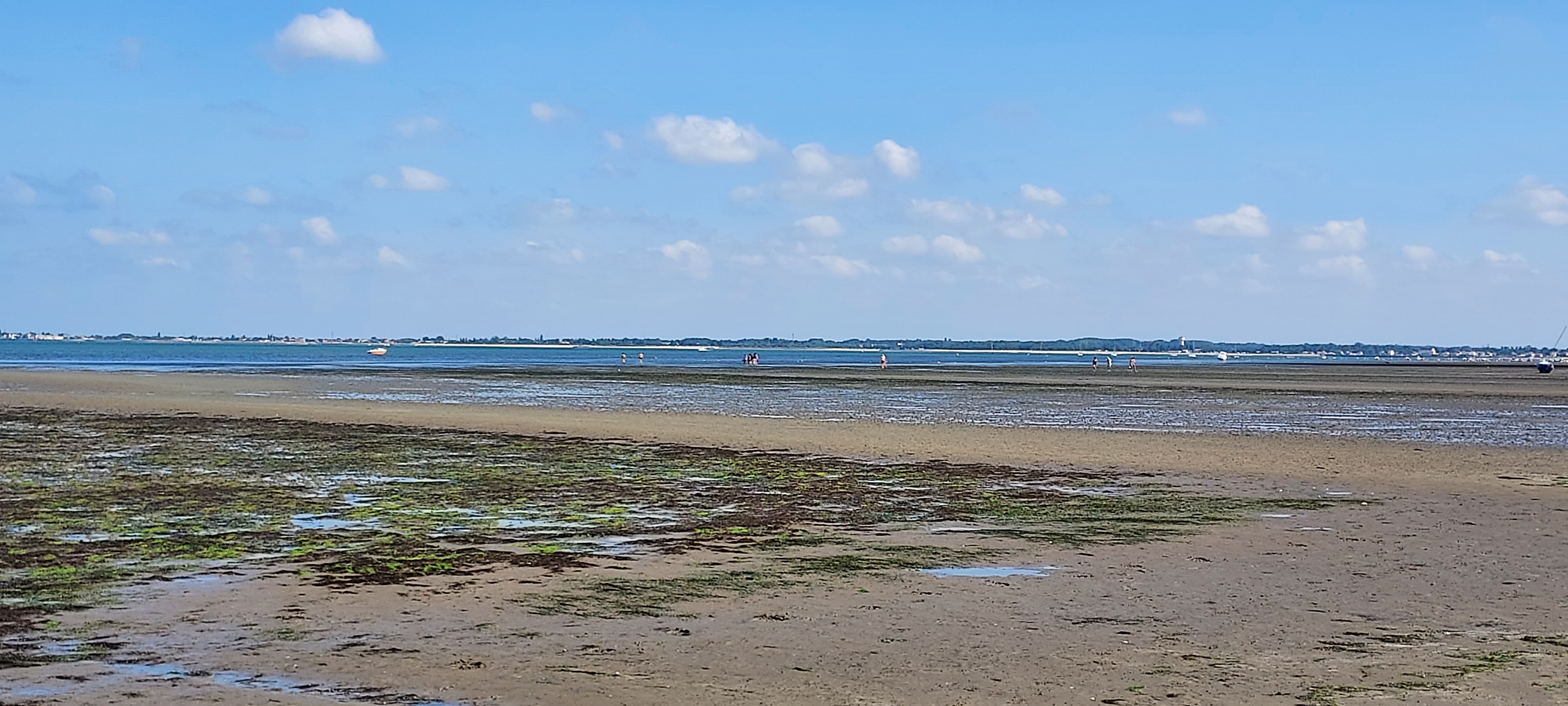 Belle plage de sable où on a de la place pour s'installer sans être les uns sur les autres. Le fond de mer est très plat donc on a pied très loin. De la place pour se garer. Calme et soleil, le paradis....