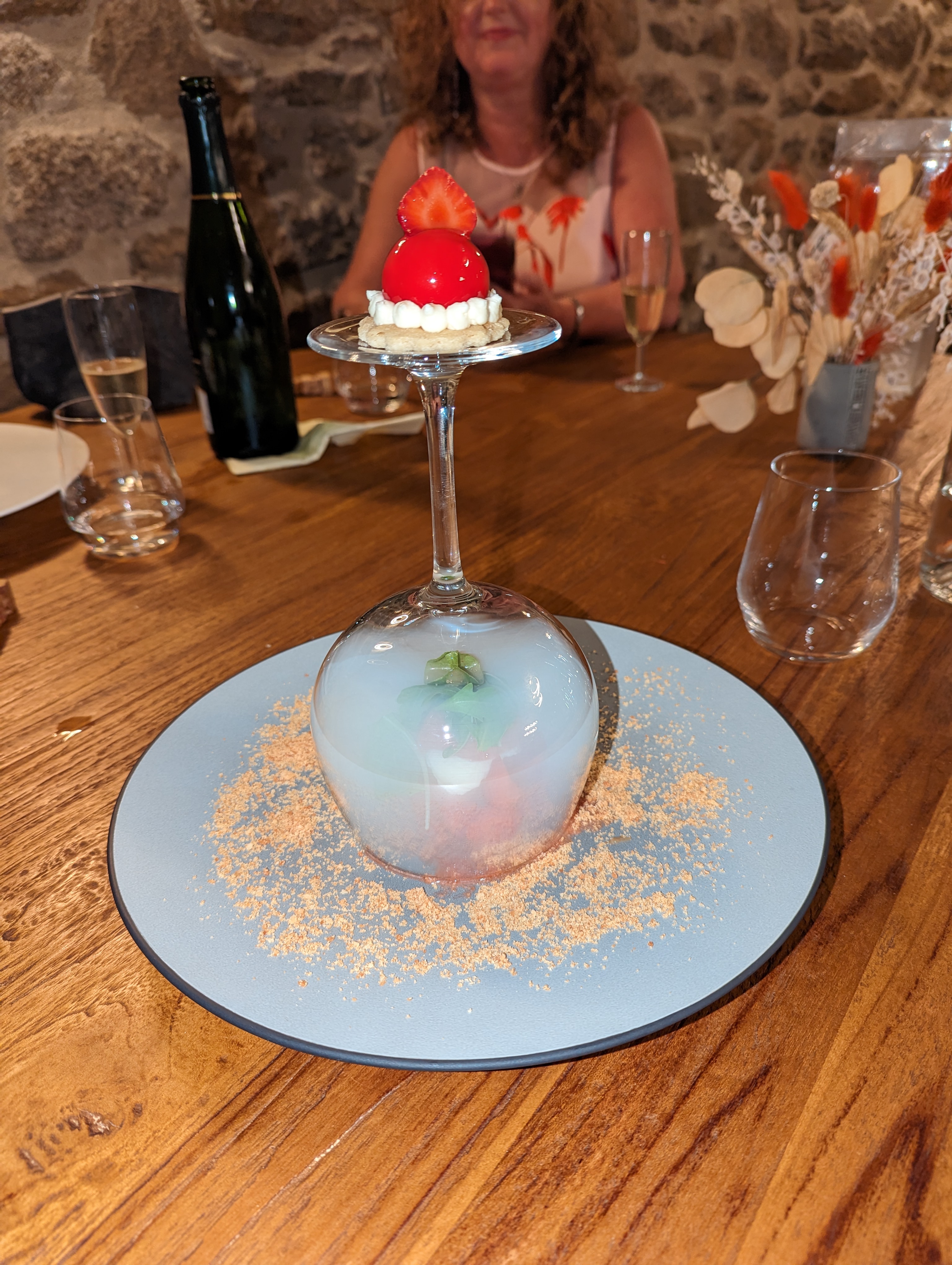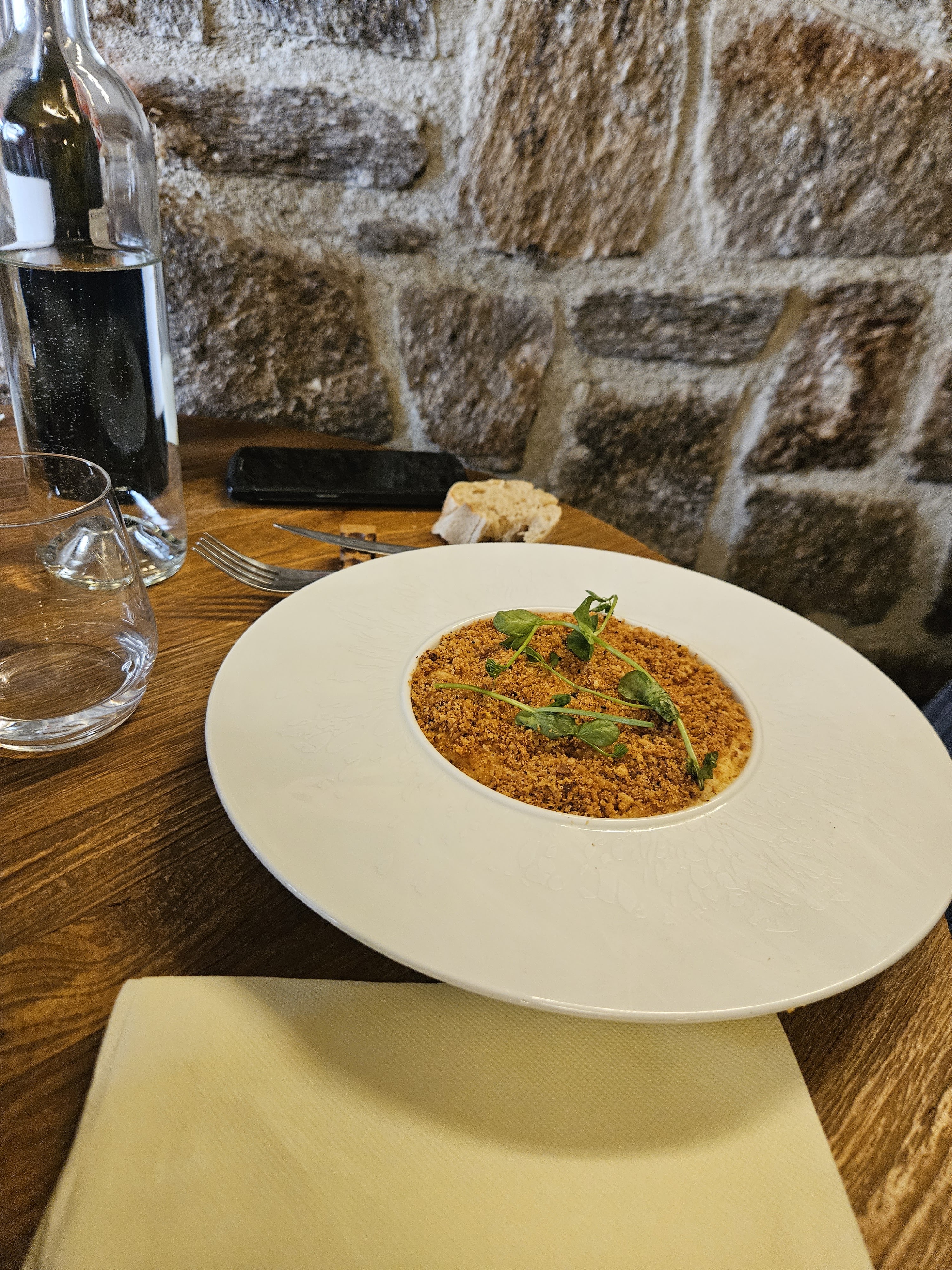 Découverte incroyable, une ambiance chaleureuse autour de la pierre, très bon accueil de la part des équipes, un travail remarquable en cuisine comme en salle, des recettes simples mais si bien élaborées N'ayant pas les photos des entrées, je ne pourrais que vous les décrire, la déclinaison de champignons de la région ainsi que la soupe à l'oignon sous toutes ses formes... un vrai régal, les produits sélectionnés du terroir, du local comme on l'aime, le travail est d'une justesse incroyable En plus de ça, la carte change à chaque saison et les vins sont abordable, nous nous sommes régalés et nous reviendrons cette hiver !