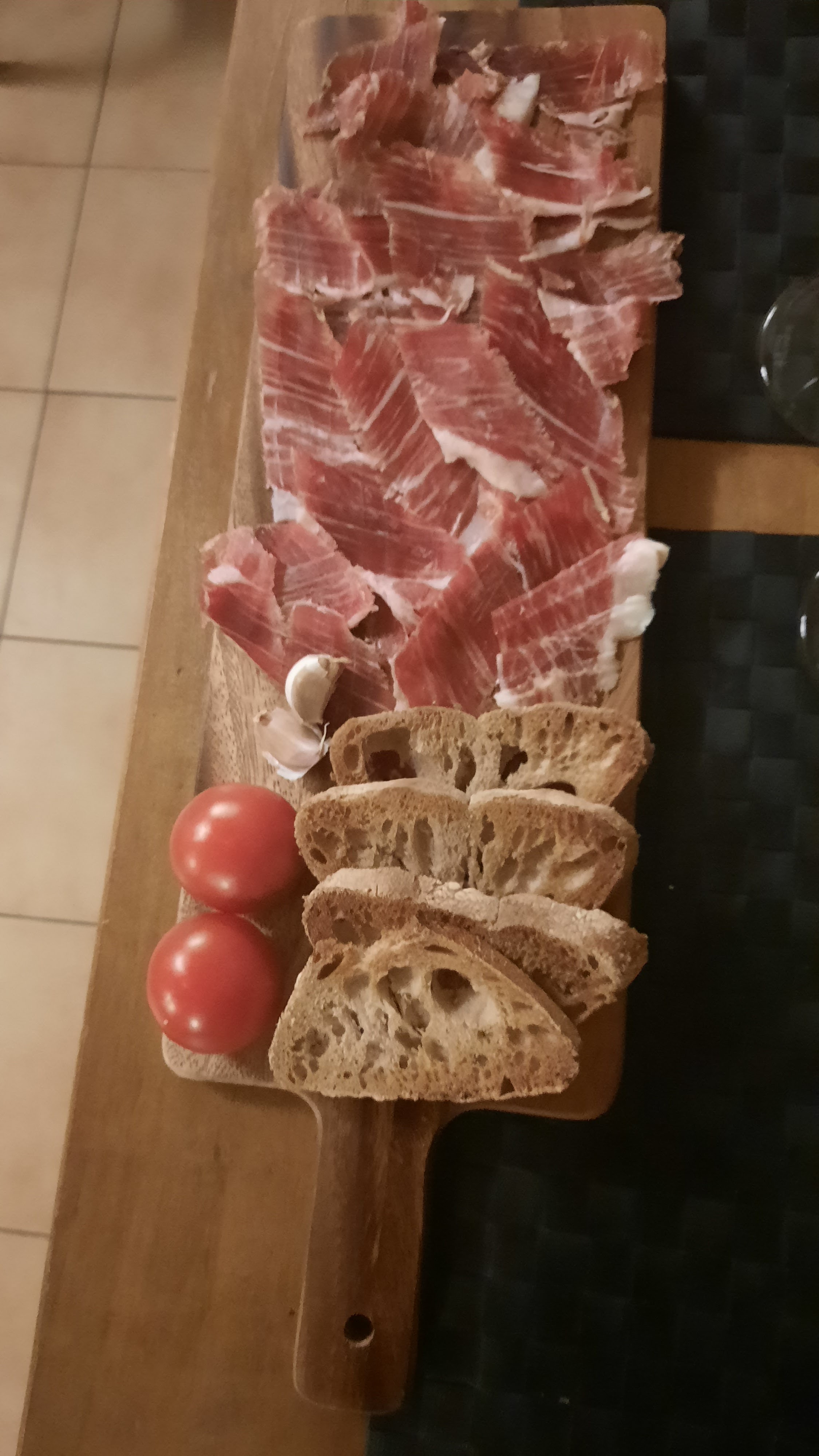 L assiette de jambon excellente avec le pain grillé tomate aïl mais dommage pas de sel ni d huile d olive. Fines tranches d'agneau (2mm) trop cuites et très sèches avec fèves farineuses et dures par moment. Bonnes petites portions de fromage avec miel du cambre et du pain fait maison délicieux. Dessert, supplément 10€ si vous n aimez pas le chocolat : 1/2 poire, trop confite ?... en tout cas elle était noire comme le chocolat 😂. Sinon les plats dans l'ensemble étaient bien présentés.