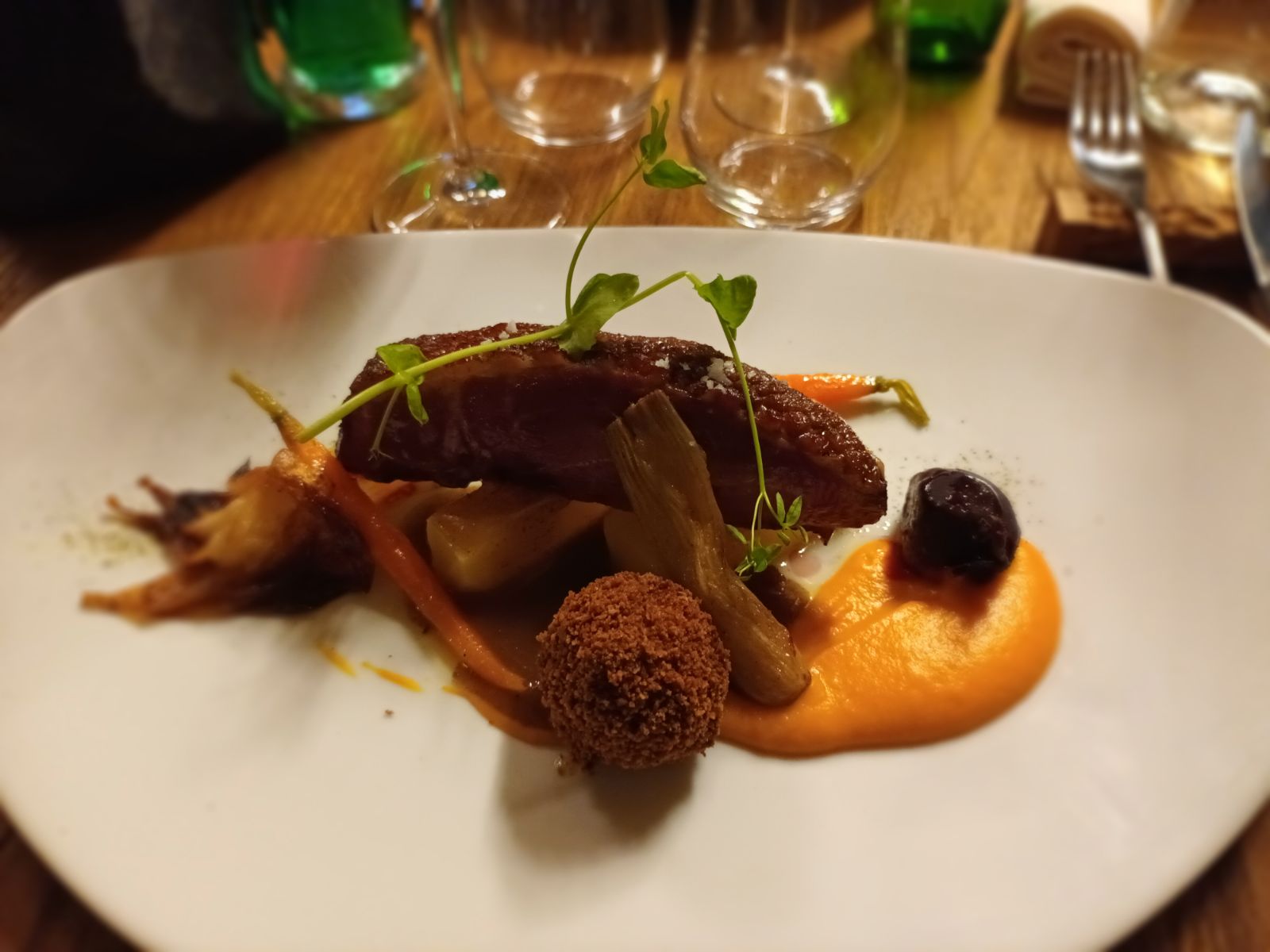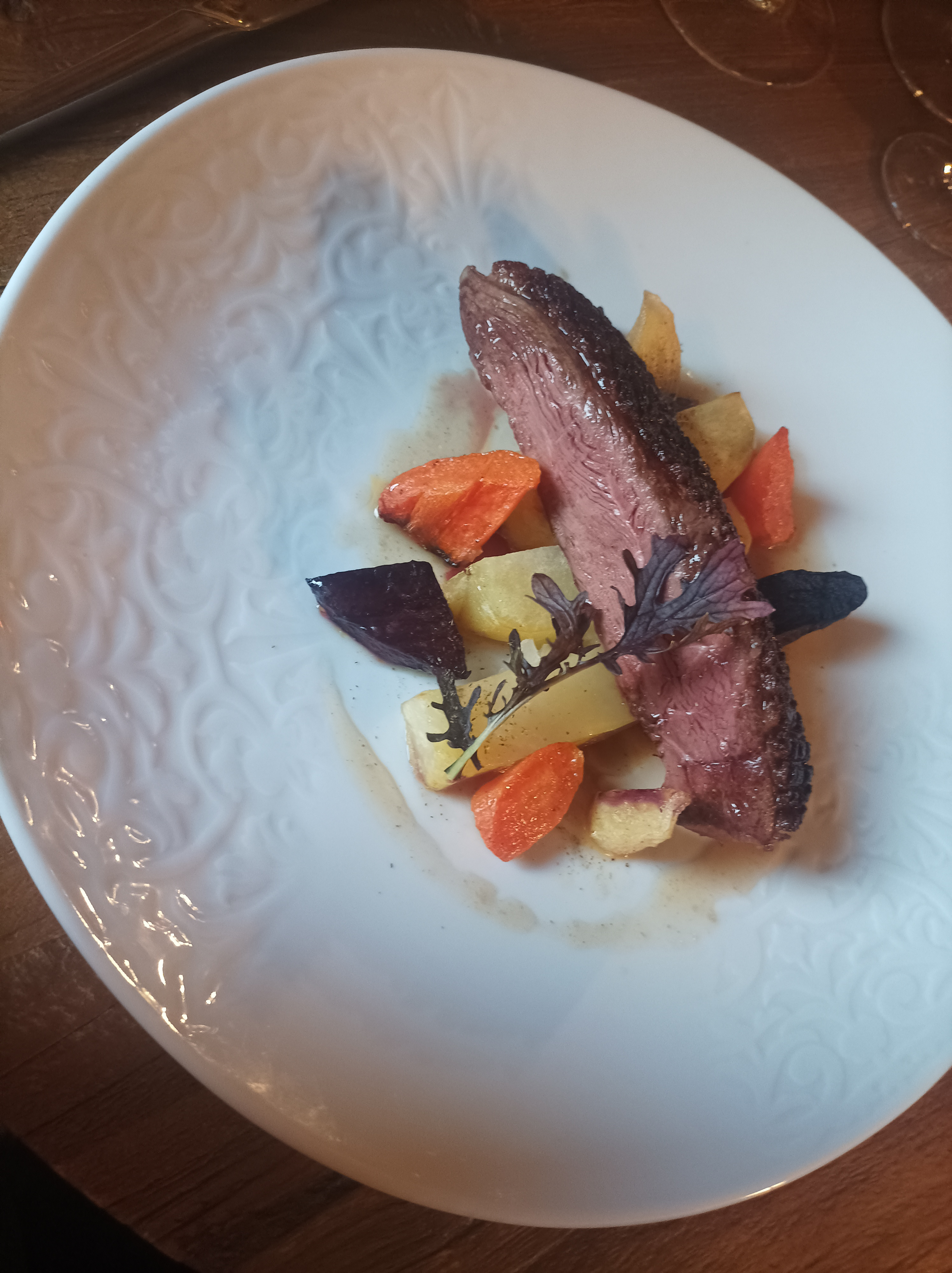 Filet de gibier divin! Accompagné de petits légumes de saison un vrai régal Très bon accueil, personnel charmant