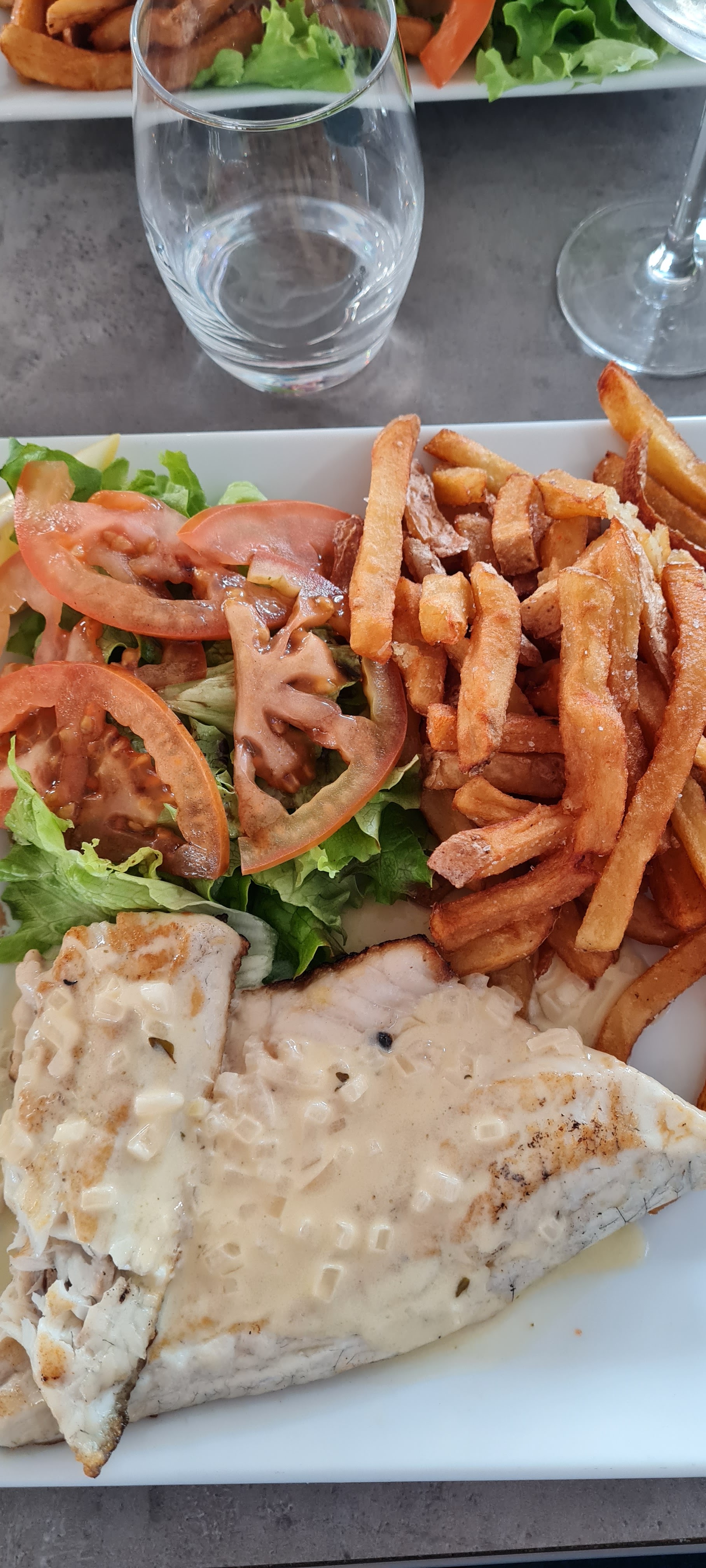 Nous nous sommes arrêtés pour un déjeuner rapide en passant. Accueil chaleureux, service rapide et cuisine excellente. Une entrée, une assiette de filet aux légumes, une salade gourmande, un café : 45 euros pour 2. Recommandé.