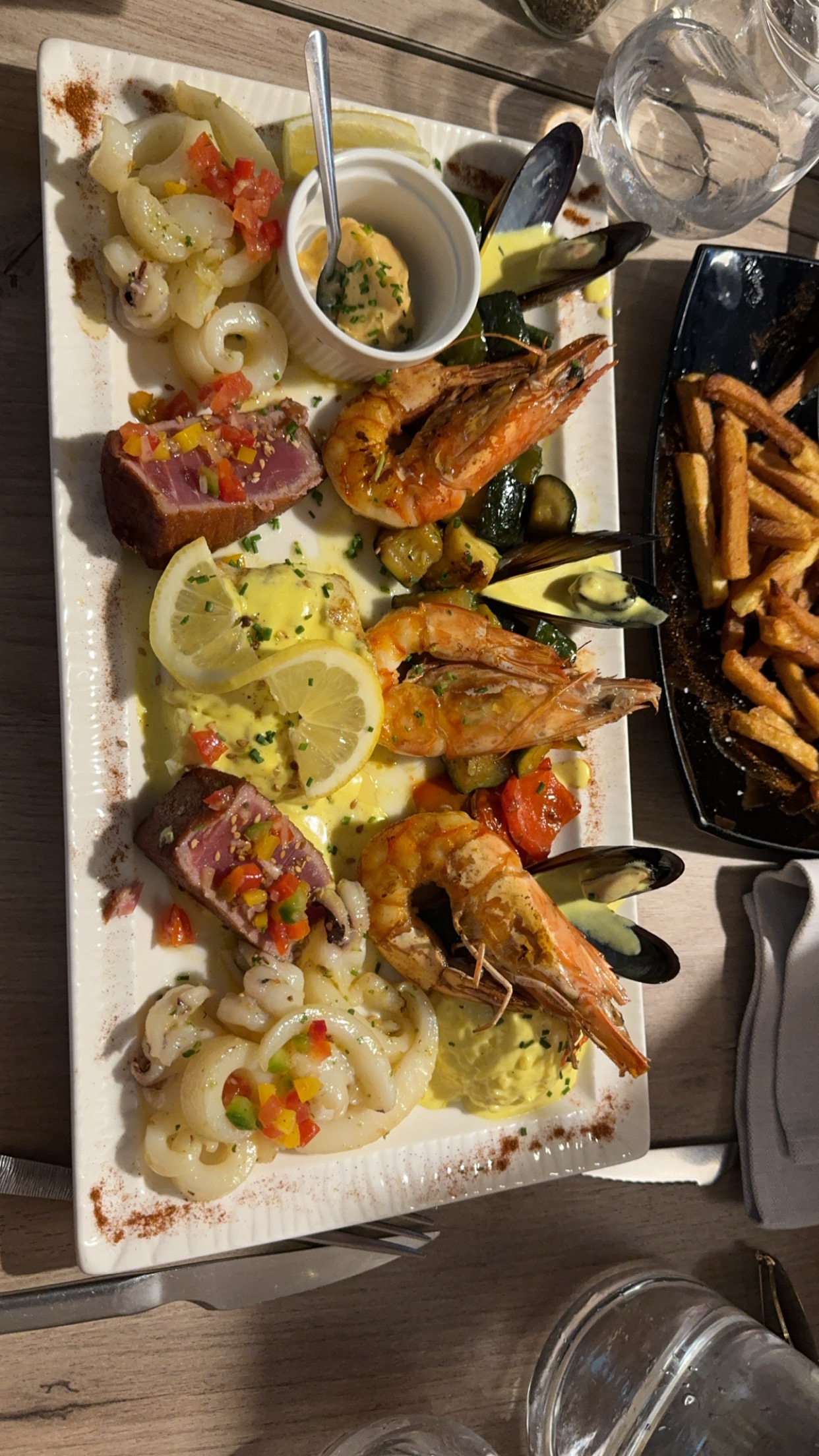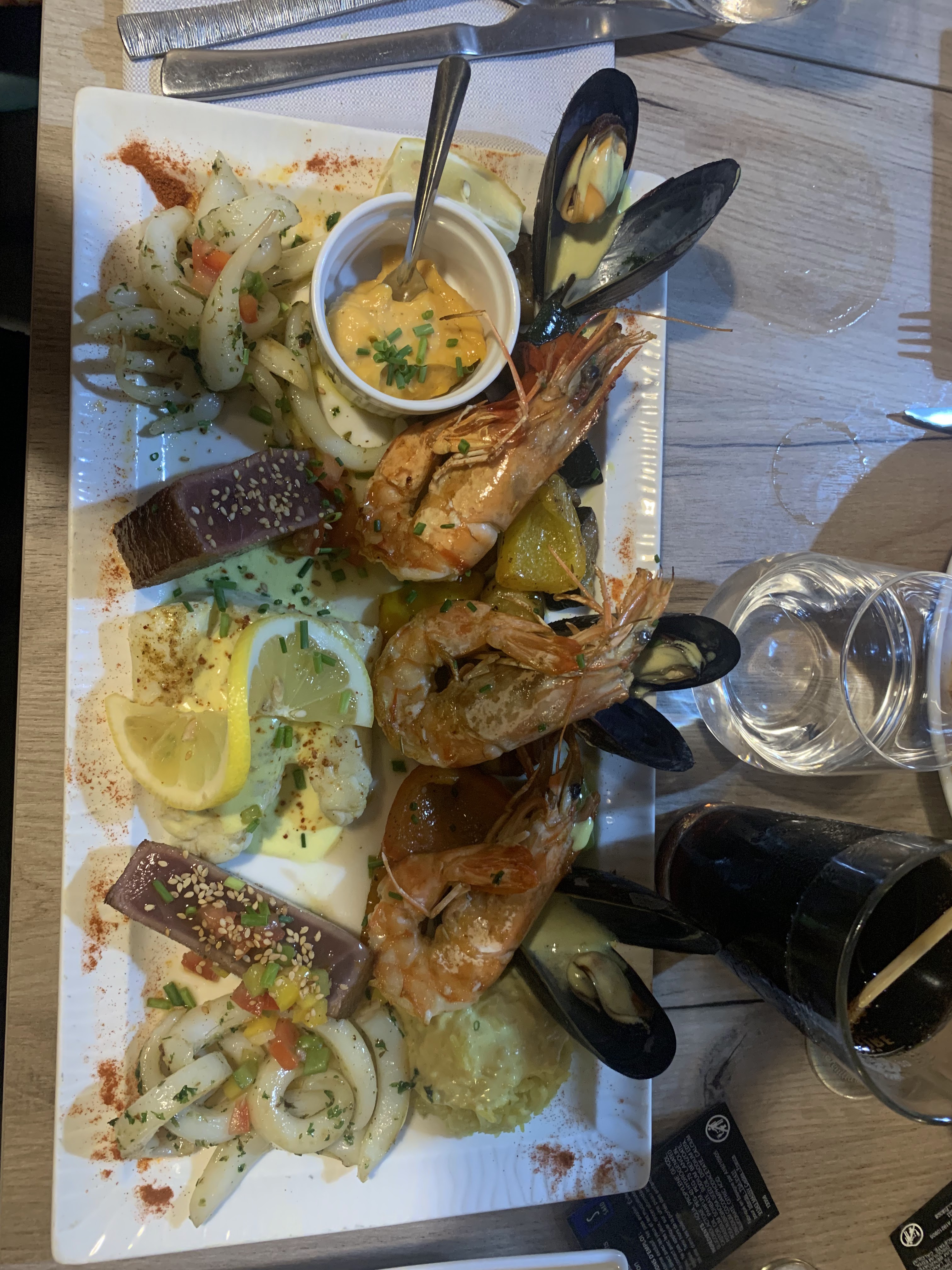 Excellent restaurant de poissons et fruits de mer ! Très bien situé face au port, très belle terrasse. Les serveurs sont d'une incroyable gentillesse. Je recommande ! En photo : assiette de coquillages en entrée et thon mi-cuit en plat