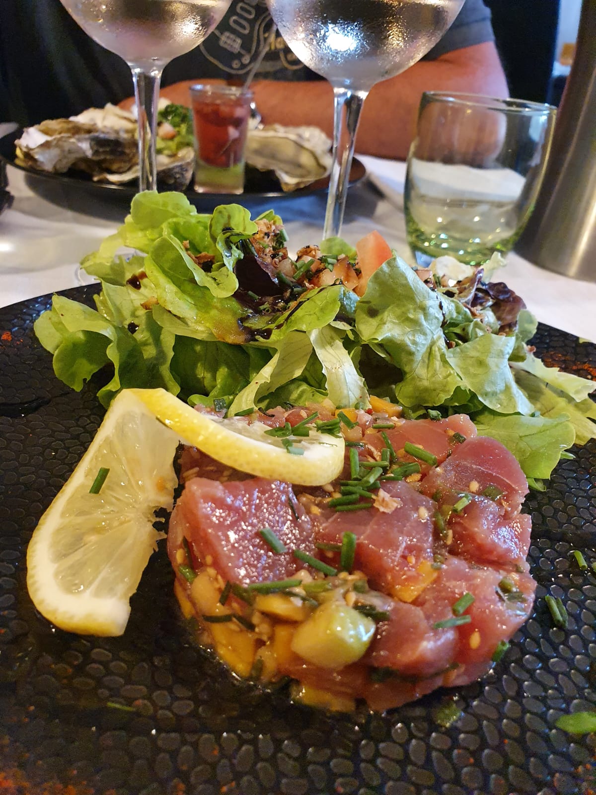 ici on cuisine, on épluche, on émince... Voilà ce qu'annonce le panneau à l'entrée. Alors pour un restaurant de bord de mer, c'est suffisamment rare pour être testé. Et bien ils n'ont pas menti. Nos deux expériences à cette table furent de bien jolis moments de convivialité et le thon mi cuit nous ravit encore et toujours. Bravo pour cette cuisine de qualité et pour toute la gentillesse qui l'accompagne