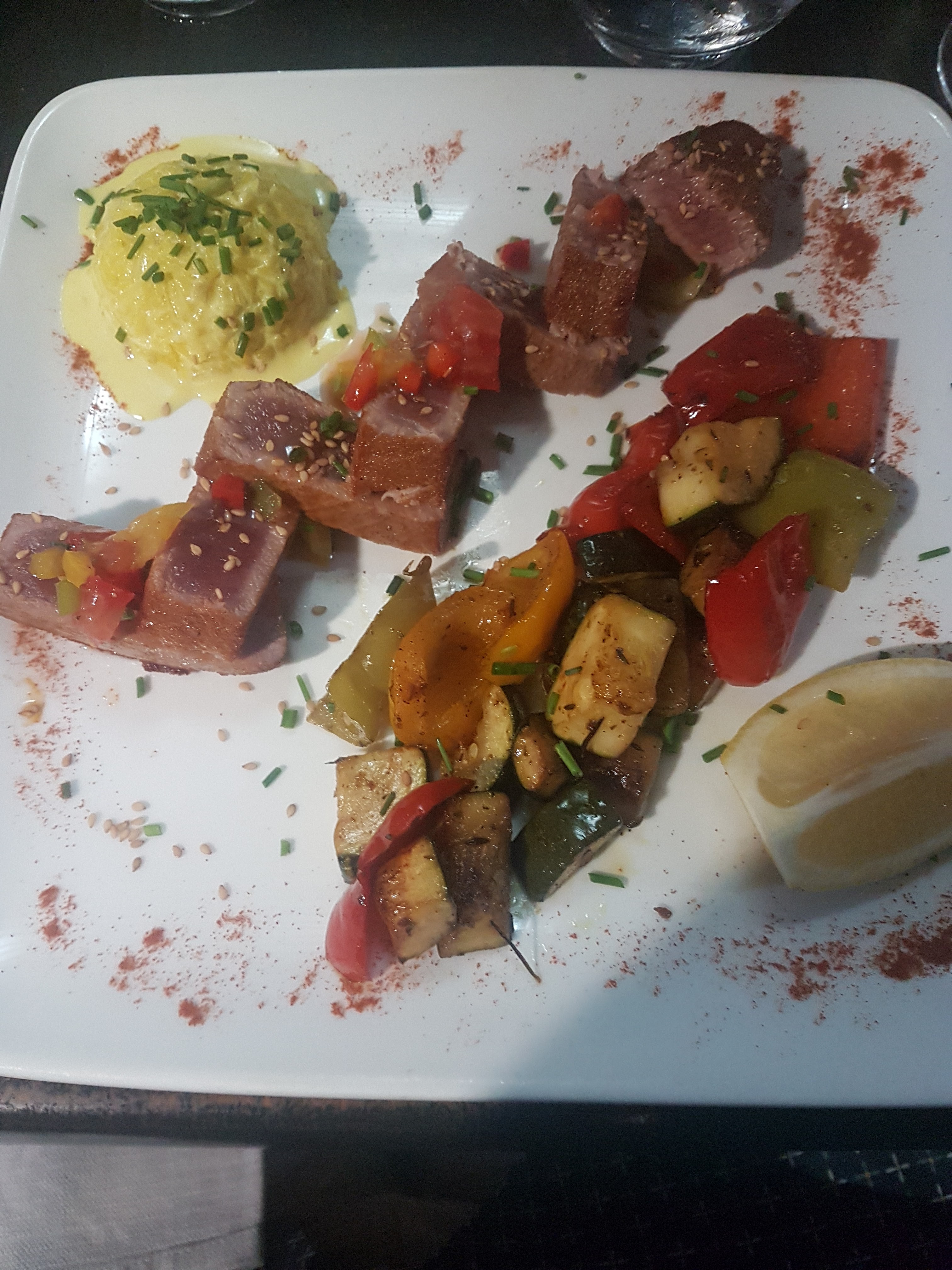 Très bonne cuisine et d'ailleurs en une semaine c'est la 3e fois que je prends du thon et c'est le premier restaurant où il est cuit comme je l'attends: mi-cuit. Les assiettes sont bien garnies et très bien assaisonnées. Petite spécificité : les plats pris à la carte sont un peu plus copieux que les plats au menu.