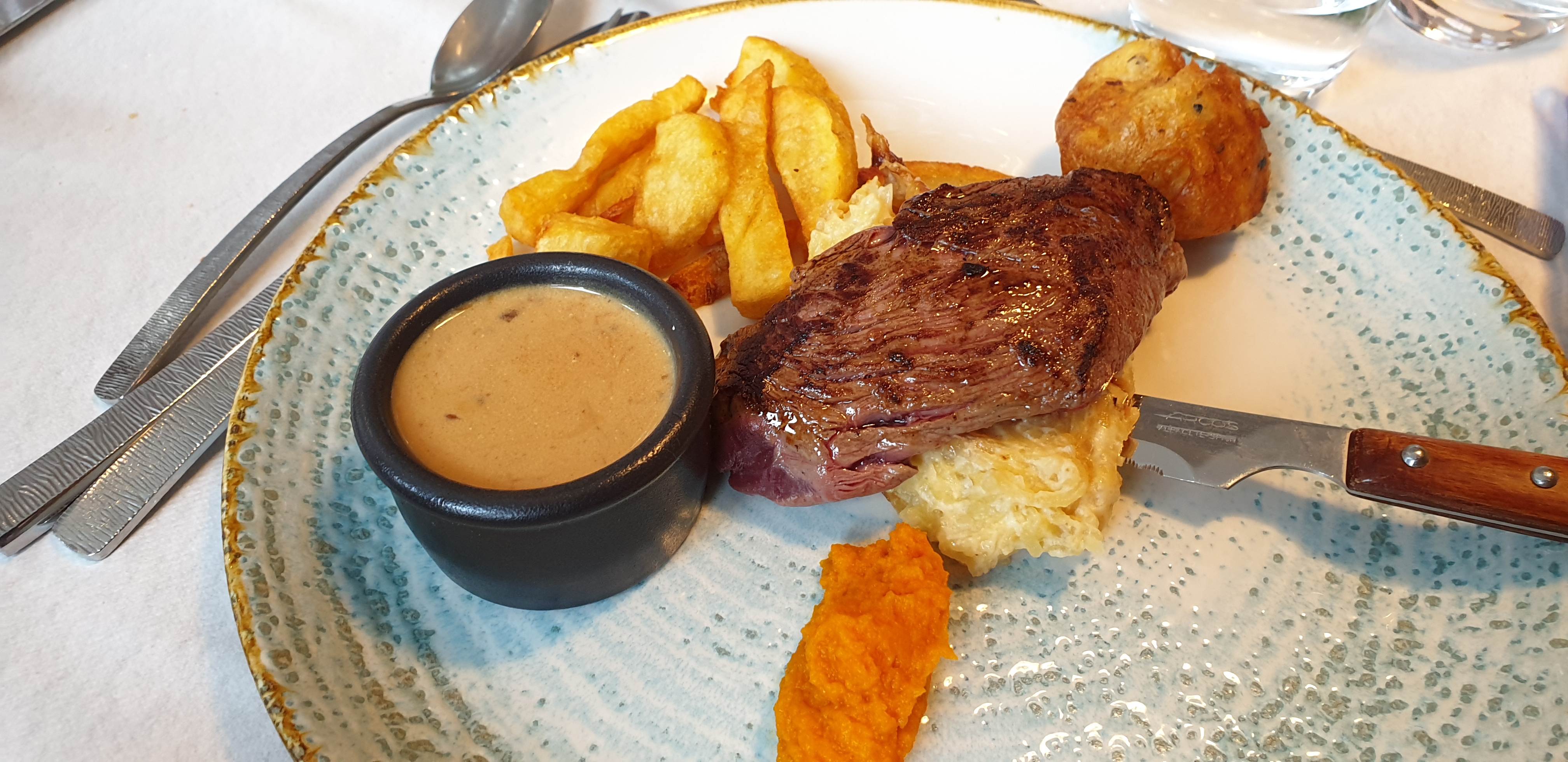 De passage dans la région, notre hôtel nous a conseillé cette adresse, et quelle adresse ! Nous avons été très bien accueillis, le punch a été un délice, la suite ne l’a été que d’autant plus ! Un saumon fumé maison, un pavé de bœuf tendre à souhait avec une cuisson parfaite (clin d’œil pour l’accompagnement qui a été succulent aussi 😉) et pour finir des profiteroles à tomber par terre avec une sauce au chocolat maison ... ! Enfin, un rapport qualité/prix plus qu’excellent ! Un restaurateur qui aime sa cuisine ! Je conseille vivement ! Plus que satisfaits du début à la fin !