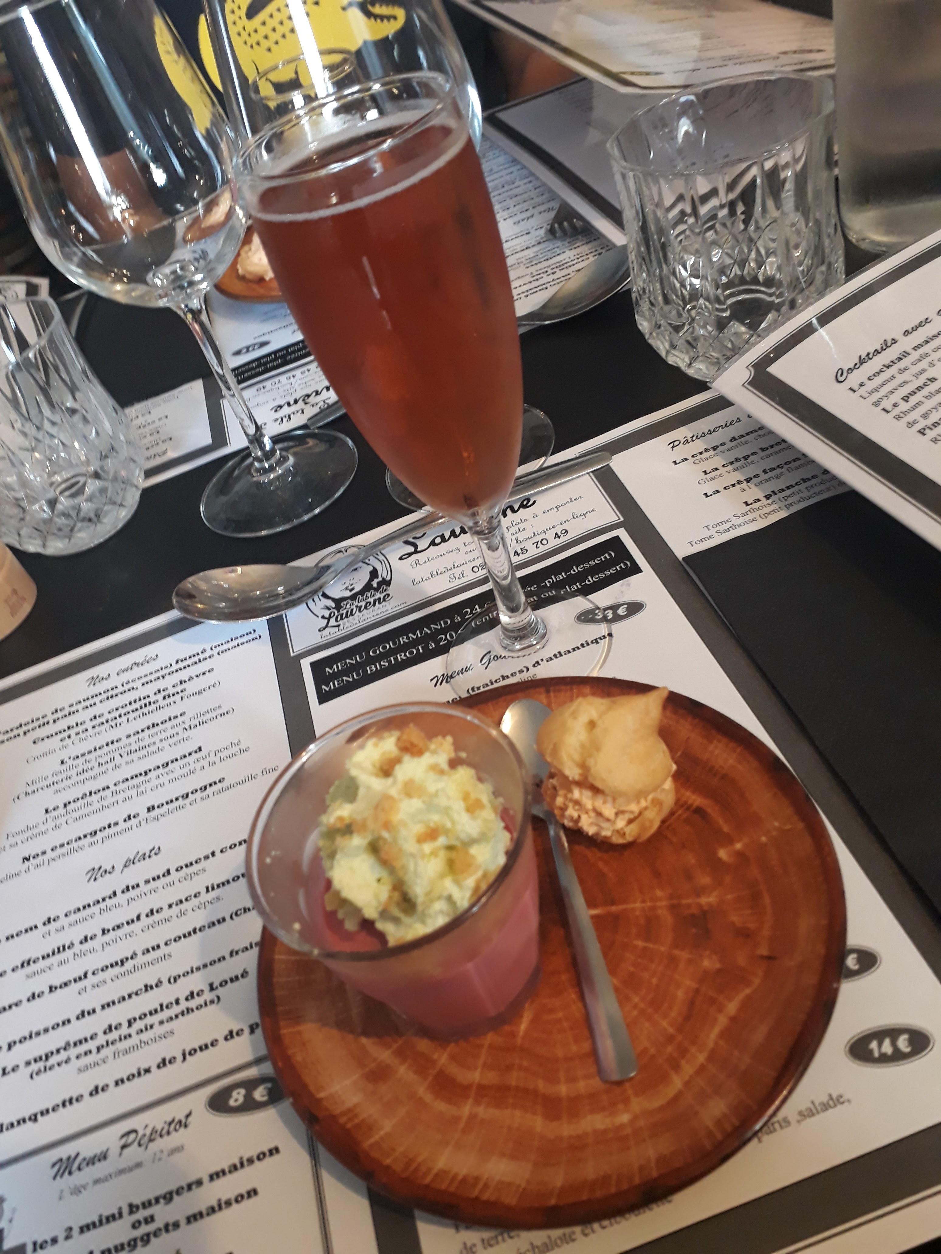 Accueil souriant,personnels vraiment sympa,apéritif avec mise en bouche offert un bon début! plats vraiment copieux et très bon(un détail andouillette un peu trop salée mais je ne suis pas sel habituellement ...)un petit plateau de mignardises en dessert miam! Une surprise à l'addition:elle vraiment pas salée! je reviendrai c'est sur!