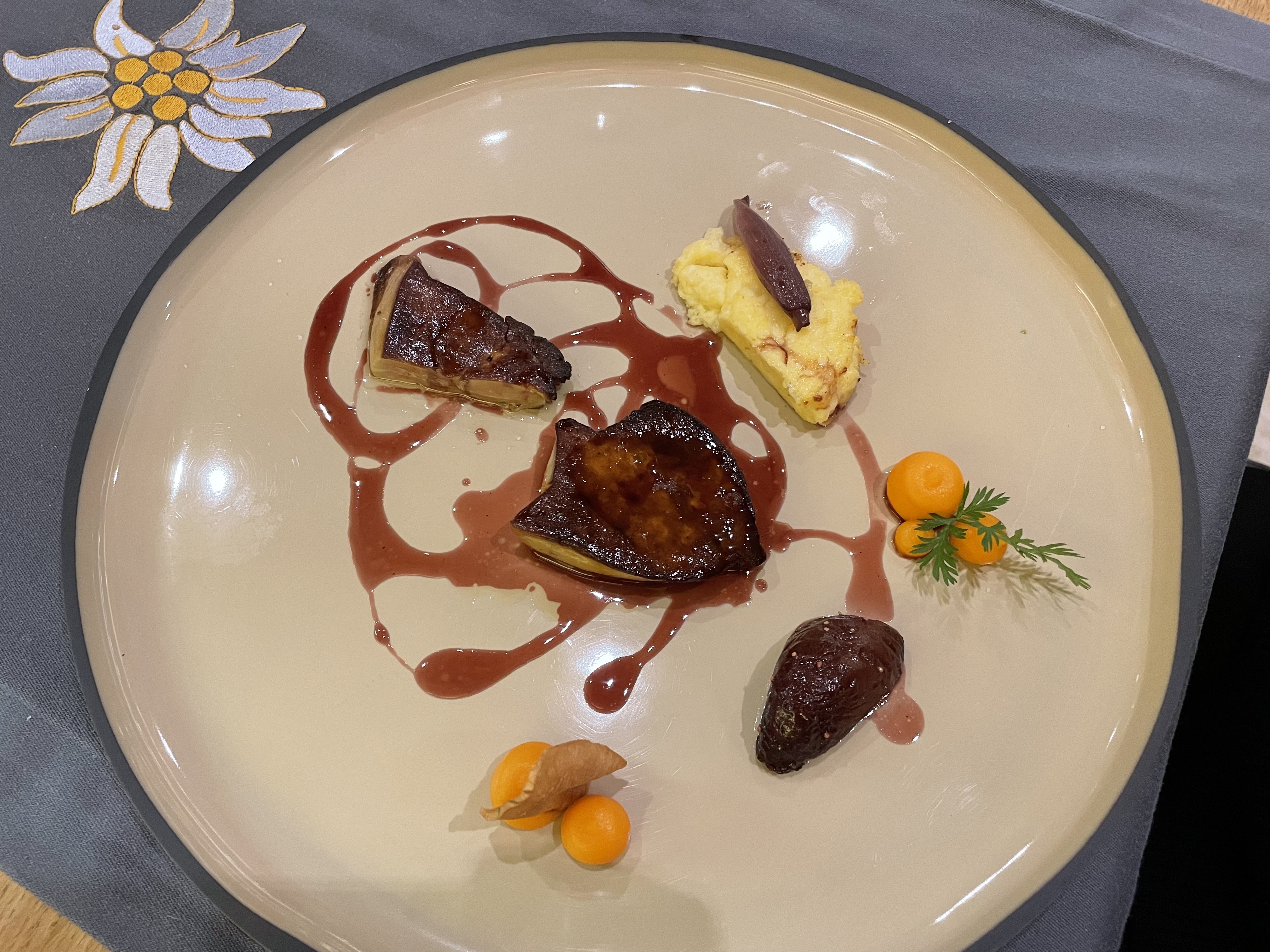 Nous avons pris 2 repas à des dates différentes Le premier repas nous avons opté pour une fondue ainsi qu'un dessert, nous étions très satisfait 5/5 Lors du deuxième dîner, nous avons pris le menu composé de foie gras,un quasi de veau et dessert Nous avons été déçu, le foie gras servi à température ambiante Le quasi de veau sans saveur et ferme. Dessert bien Note 2,5 sur 5