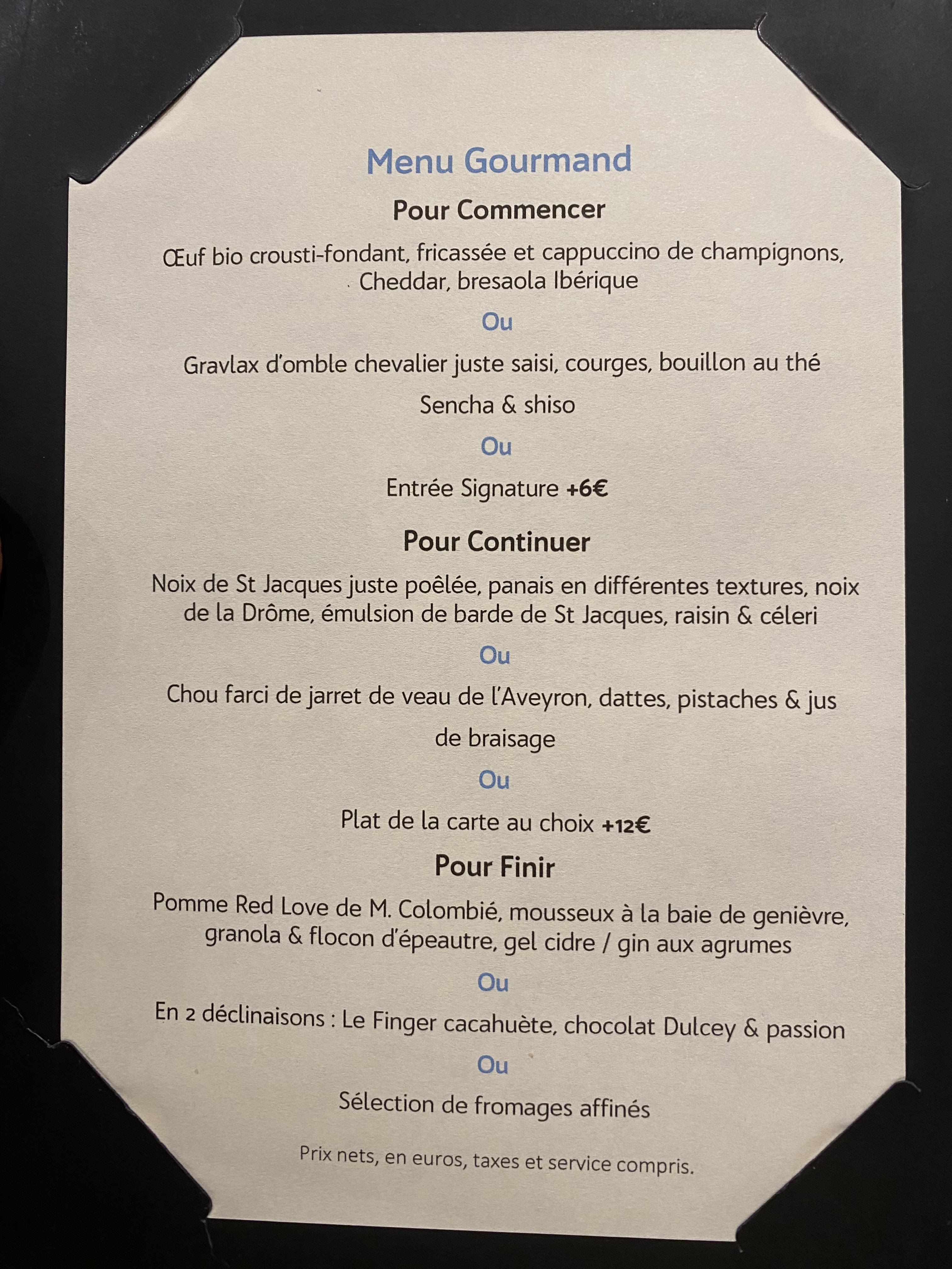 Nous avons très mangés mais nous avons été déçus car nous venions pour le menu gourmand comme ce que nous avions vu sur le site.Hors ce n'est pas possible en semaine le midi. Ce serai bien de le préciser. Désolée car notre plaisir c'est d essayer de nouveaux restaurants.