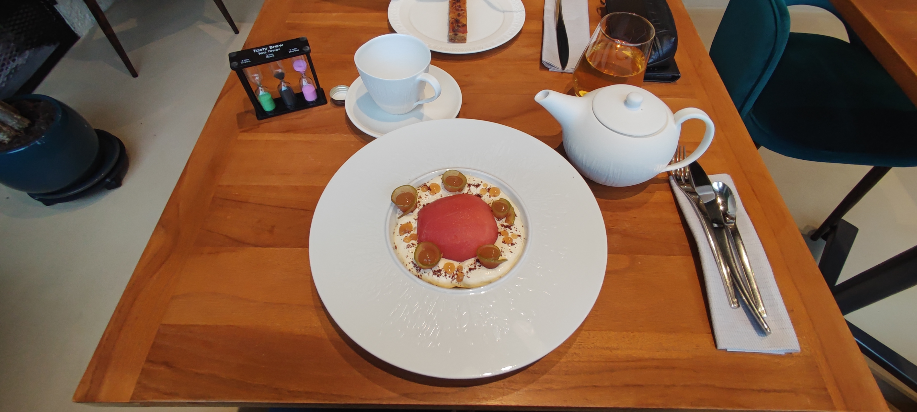 Que dire... Pour le moment nous avons testé la partie salon de thé (de 15h à 18h donc). 2 gâteaux : Tiramisu signature et île flottante tartelette pommes. Le tiramisu est tout en légèreté, vraiment très bon. L'île flottante/tartelette est succulente : une explosion de saveurs en bouche, notamment grâce à un dôme d'épices (dont le mélange est classé secret défense 😁), avec une délicieuse crème et les morceaux de pommes, vraiment un régal. Le tout accompagné d'un chocolat viennois maison : que du bonheur. Un accueil, accompagnement et service des plus souriant et chaleureux. Un budget un petit peu élevé mais la qualité y est tellement présente. Nous avons hâte de refaire l'expérience tea Time et tester le restaurant dont la carte (hebdomadaire) est des plus alléchante... à suivre donc